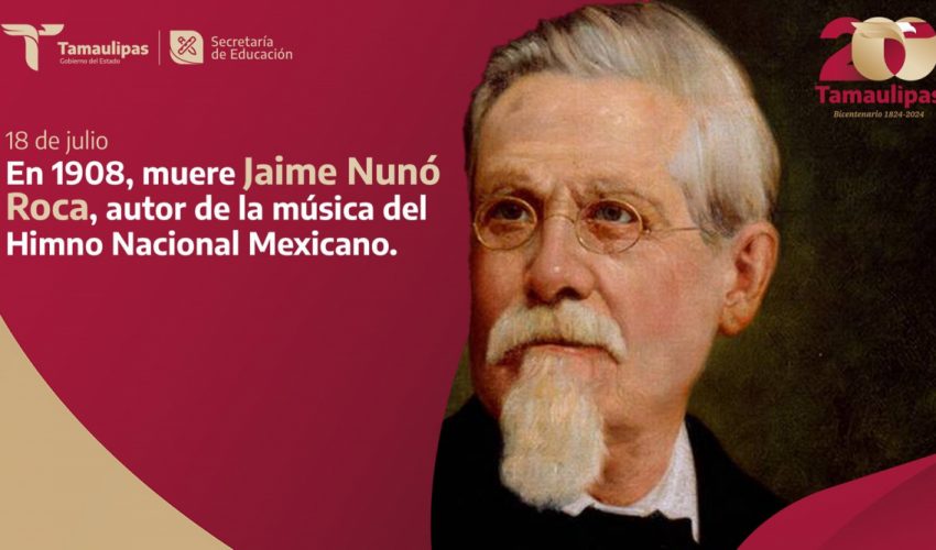 En 1908, muere Jaime Nunó Roca, compositor y director de orquesta, escribió las notas musicales que acompañan la letra de nuestro Himno Nacional; sus restos descansan en México en la Rotonda de las Personas Ilustres.
