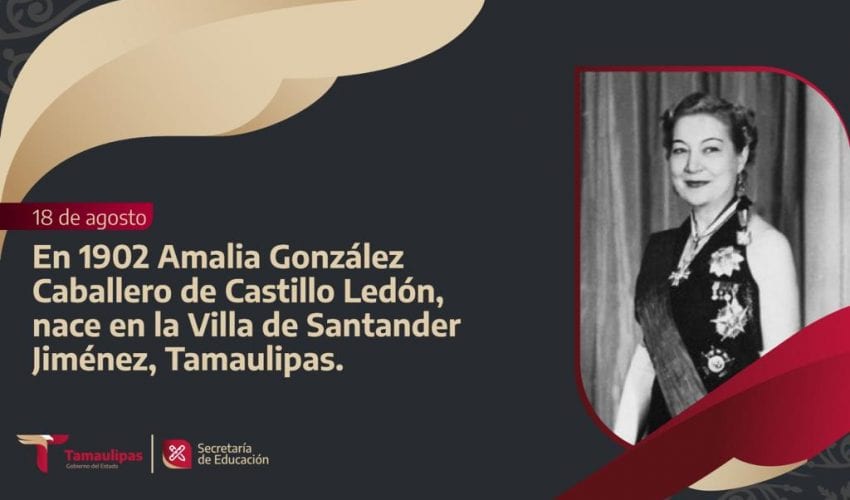 18 de agosto de 1898, Amalia González Caballero de Castillo Ledón, nace en la Villa de Santander Jiménez, Tamaulipas, quien se convertiría en una distinguida lideresa política, maestra, escritora, feminista y diplomática mexicana.