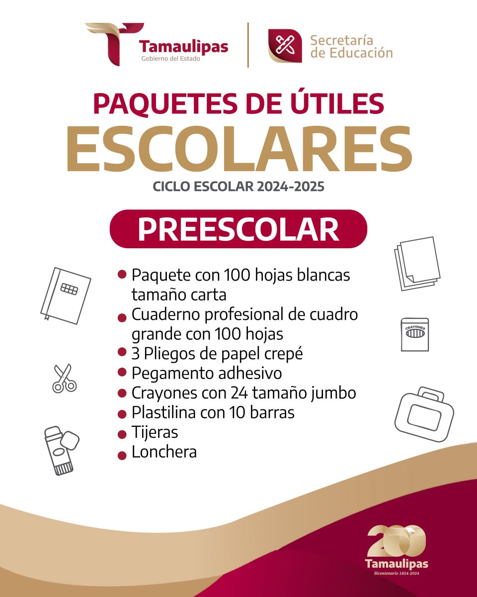 Y recuerda antes de realizar tus compras para el regreso a clases, conoce los paquetes de útiles escolares que el Gobierno del Estado de Tamaulipas entregará a las niñas, niños y jóvenes de escuelas públicas para el ciclo escolar 2024-2025.