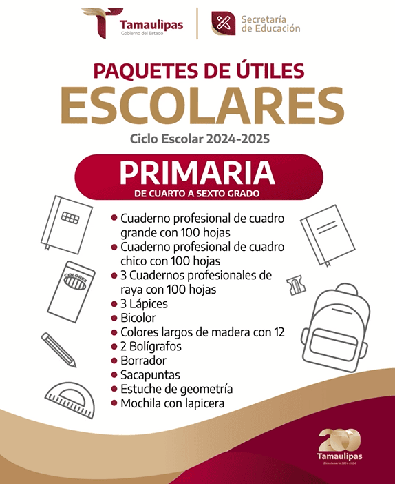 Y recuerda antes de realizar tus compras para el regreso a clases, conoce los paquetes de útiles escolares que el Gobierno del Estado de Tamaulipas entregará a las niñas, niños y jóvenes de escuelas públicas para el ciclo escolar 2024-2025.