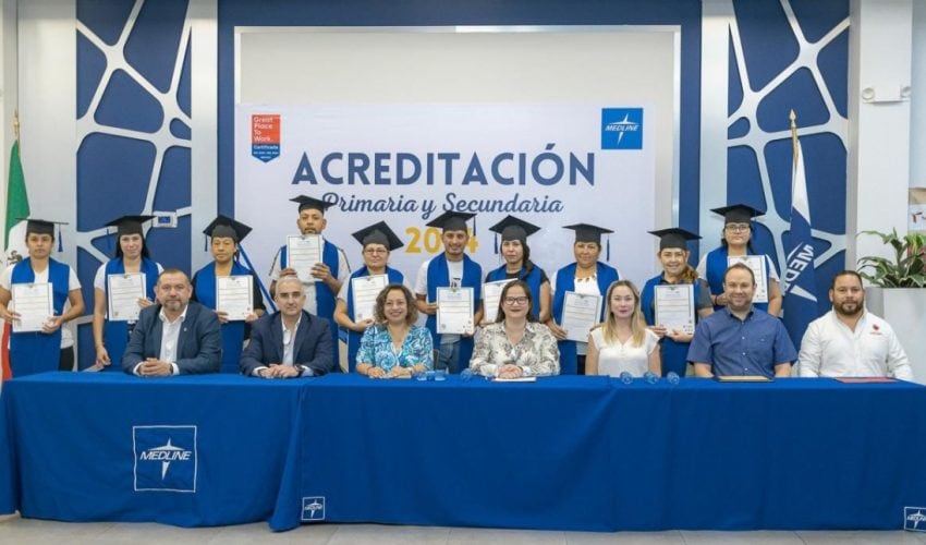 Durante su gira de trabajo por el municipio de Nuevo Laredo, la secretaria de Educación de Tamaulipas, Lucía Aimé Castillo Pastor, junto a la directora general del Instituto Nacional de Educación para Adultos, Ixchel George Hernández, visitaron la empresa MEDLINE, para hacer entrega de certificados de Primaria y Secundaria a más de 80 empleados de la compañía que concluyeron con gran satisfacción sus estudios.