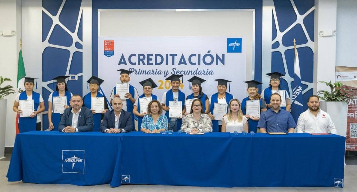 Entrega SET y INEA certificados de Primaria y Secundaria a 80 empleados de MEDLINE en NLD