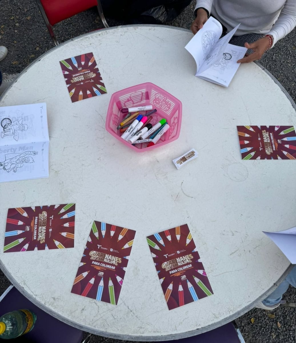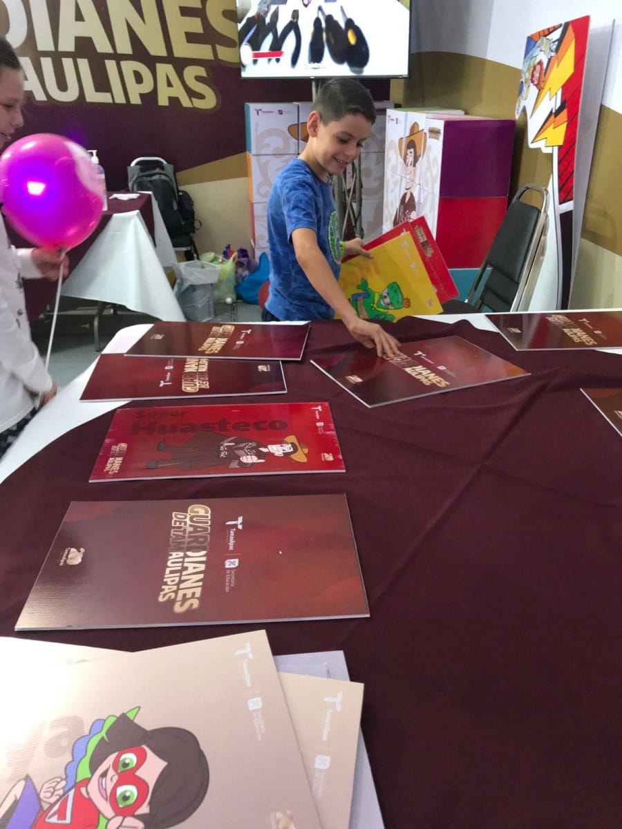 Se pueden apreciar actividades con los Guardianes de Tamaulipas: Súper Juancho con Memorama y Alimenta a Juancho, Súper Maya y Súper Pintorín con Pintacaritas y Arte con Super Héroes, de la Dirección de Educación Primaria.