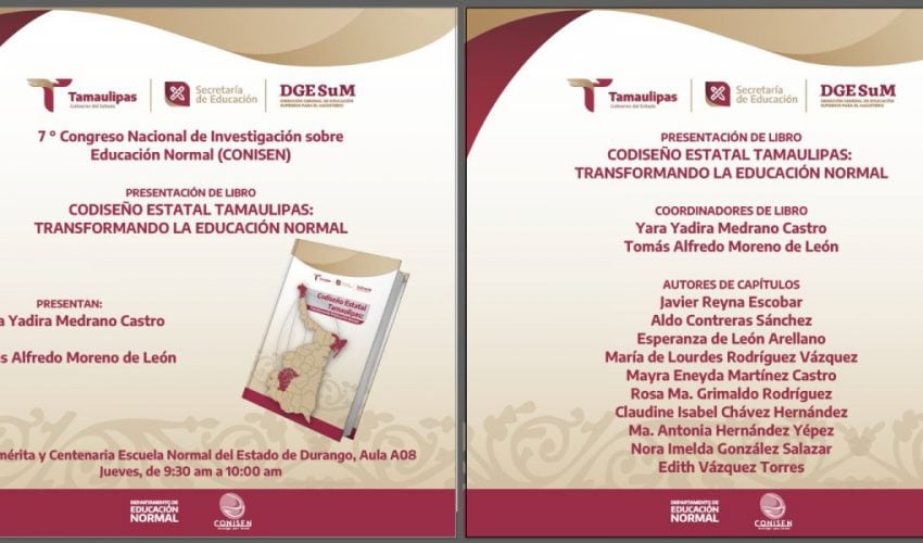 Tamaulipas participó en el Séptimo Congreso Nacional de Investigación sobre la Educación Normal (CONISEN), realizada en el estado de Durango, mismo que fomenta la creación de redes académicas, el desarrollo de proyectos colaborativos y una mejor coherencia entre la teoría educativa y la práctica docente.