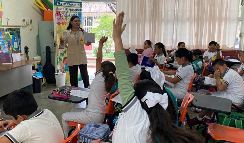 A través del ‘Proyecto Integrador para el desarrollo de habilidades socioemocionales de alumnos, alumnas y docentes’, diseñado para realizarse en las escuelas de educación básica del estado, se fortalecen las habilidades socioemocionales de maestras, maestro, niños y niñas que les permiten generar un ambiente de paz que mejora la convivencia.