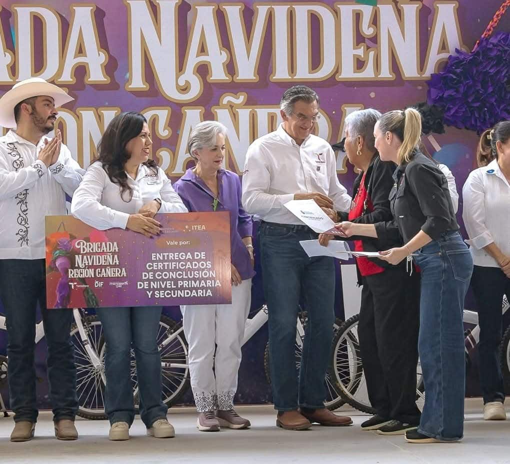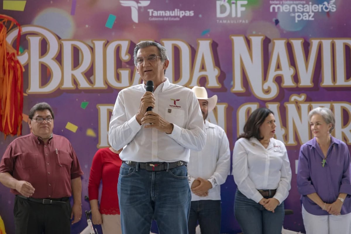 Con la presencia del gobernador del Estado, Américo Villarreal Anaya, y su esposa, Maria de Villarreal, presidenta del Sistema DIF Tamaulipas, se llevó a cabo la brigada navideña “Transformando Familias” en la zona cañera de El Mante y la región.