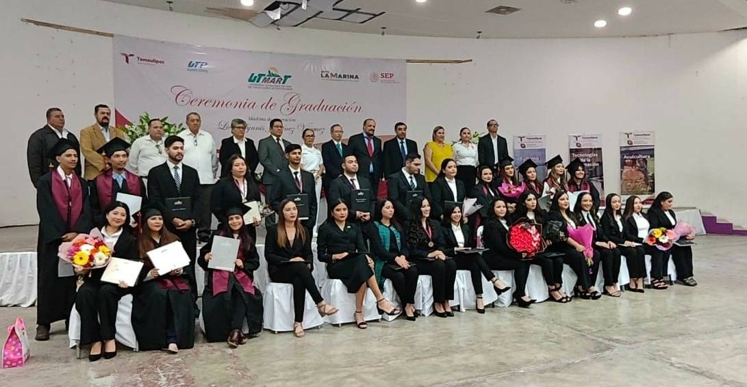 El subsecretario de Educación Media Superior y Superior de Tamaulipas, Guadalupe Acosta Villarreal, acudió en representación del gobernador Américo Villarreal Anaya, y de la secretaria de Educación, Lucía Aimé Castillo Pastor, a la celebración de la emotiva Ceremonia de Graduación de las y los egresados de la Universidad Tecnológica del Mar de Tamaulipas Bicentenario (UTMarT), en el municipio de Soto La Marina.