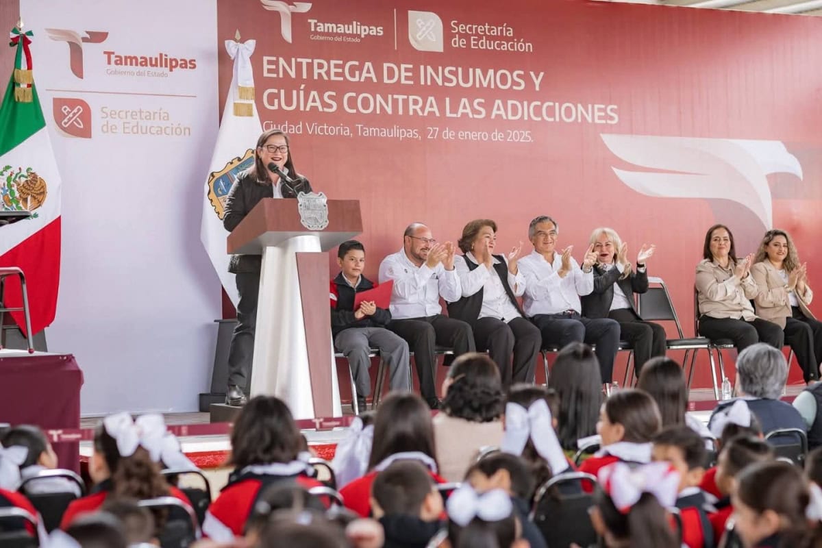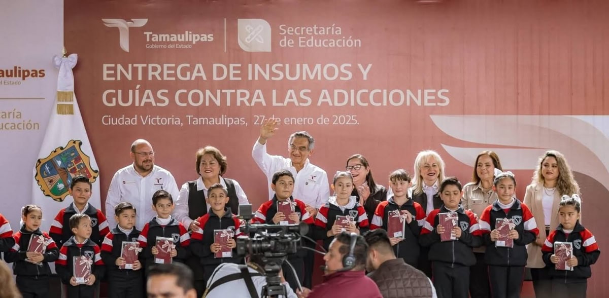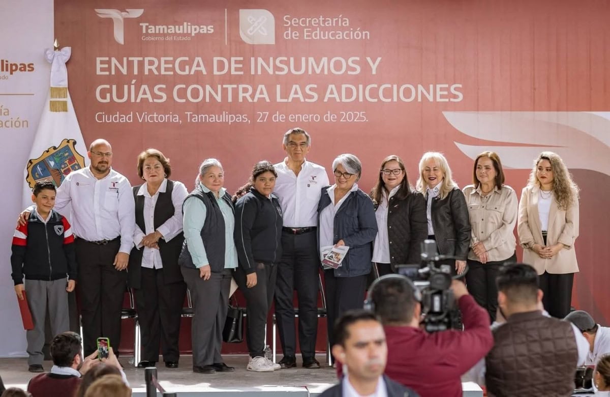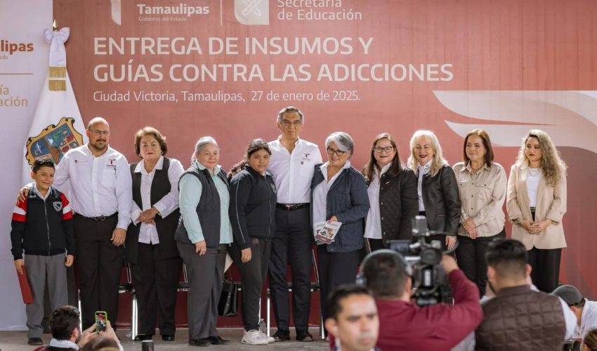 El gobernador Américo Villarreal Anaya, reafirmó el compromiso con el sector educativo de Tamaulipas, al hacer entrega de apoyos para planteles de Educación Básica y Guías Contra las Adicciones, con la finalidad de fortalecer el derecho a una educación integral y de excelencia.