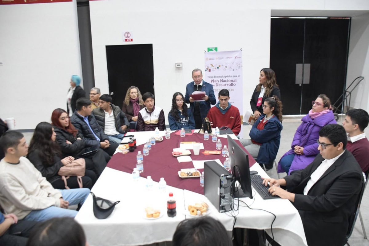 El subsecretario de Educación Media Superior y Superior, de la SET, Guadalupe Acosta Villarreal participó en las Mesas de Diálogo de la Juventud que se instalaron en el Foro de Consulta Pública para el Plan de Desarrollo 2025-2030.