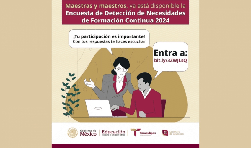 La Secretaría de Educación de Tamaulipas a través de la Dirección de Formación Continua y Actualización Docente, invita a que participen en la Encuesta de Detección de Necesidades de Formación Continua 2024.