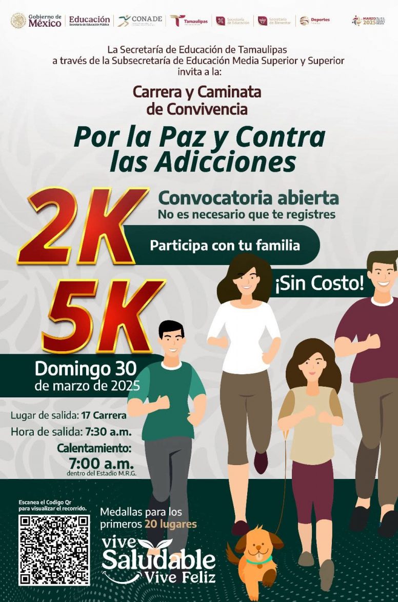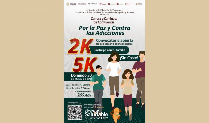 Este 30 de marzo de 2025, invitamos a estudiantes, docentes, directivos y personal de educación media superior, con sus familias, a correr juntas y juntos por un futuro de paz, salud y bienestar.
