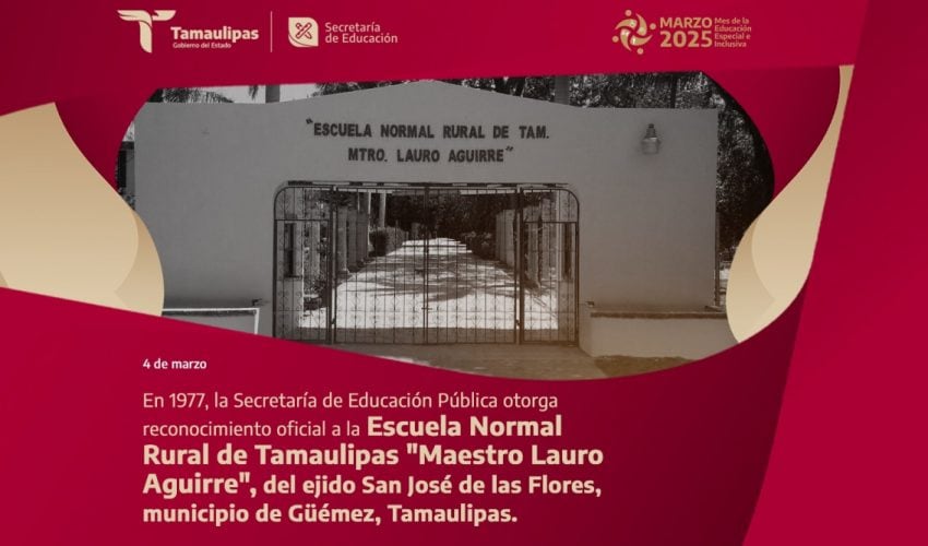 En 1977, la Secretaría de Educación Pública otorga reconocimiento oficial a la Escuela Normal Rural de Tamaulipas «Maestro Lauro Aguirre», del ejido San José de las Flores, municipio de Güémez, Tamaulipas.