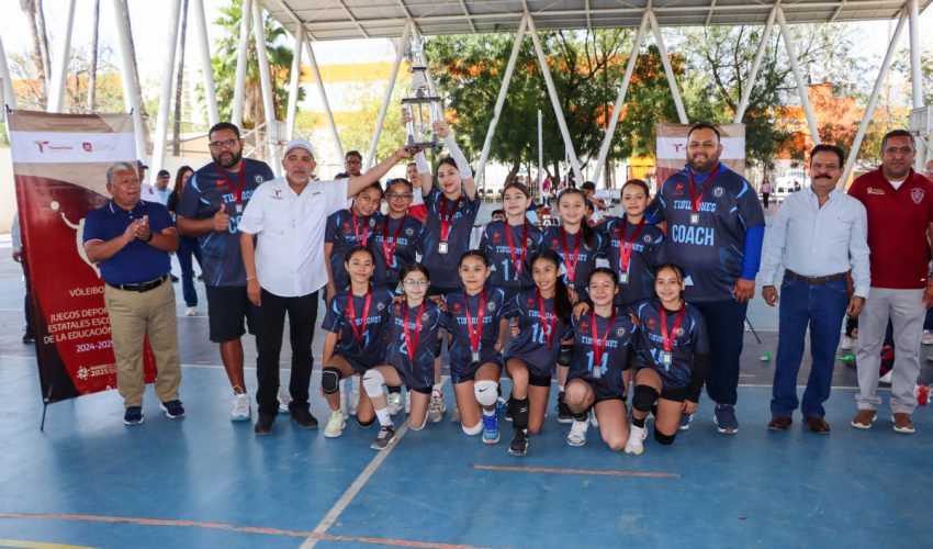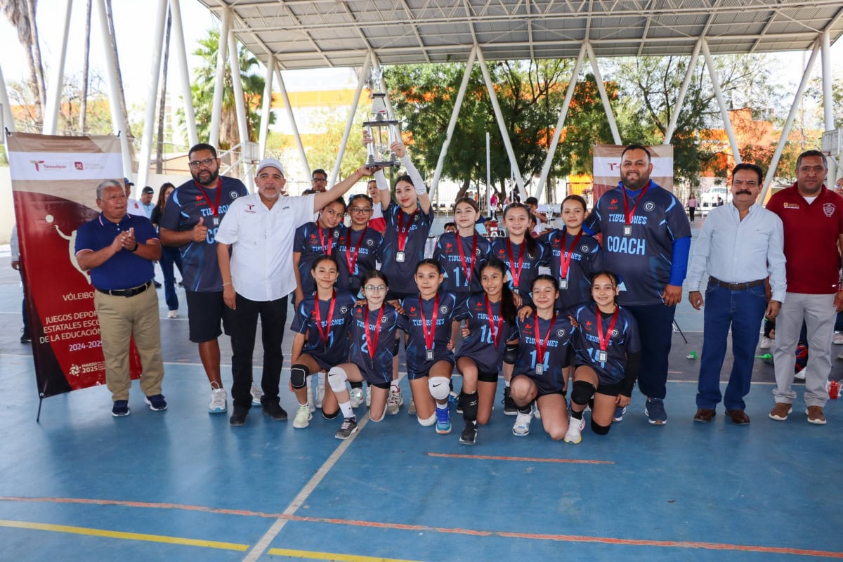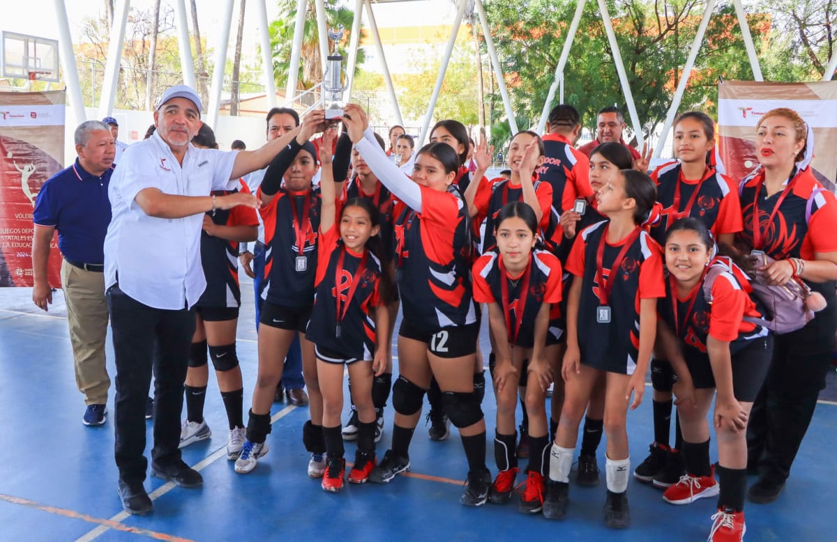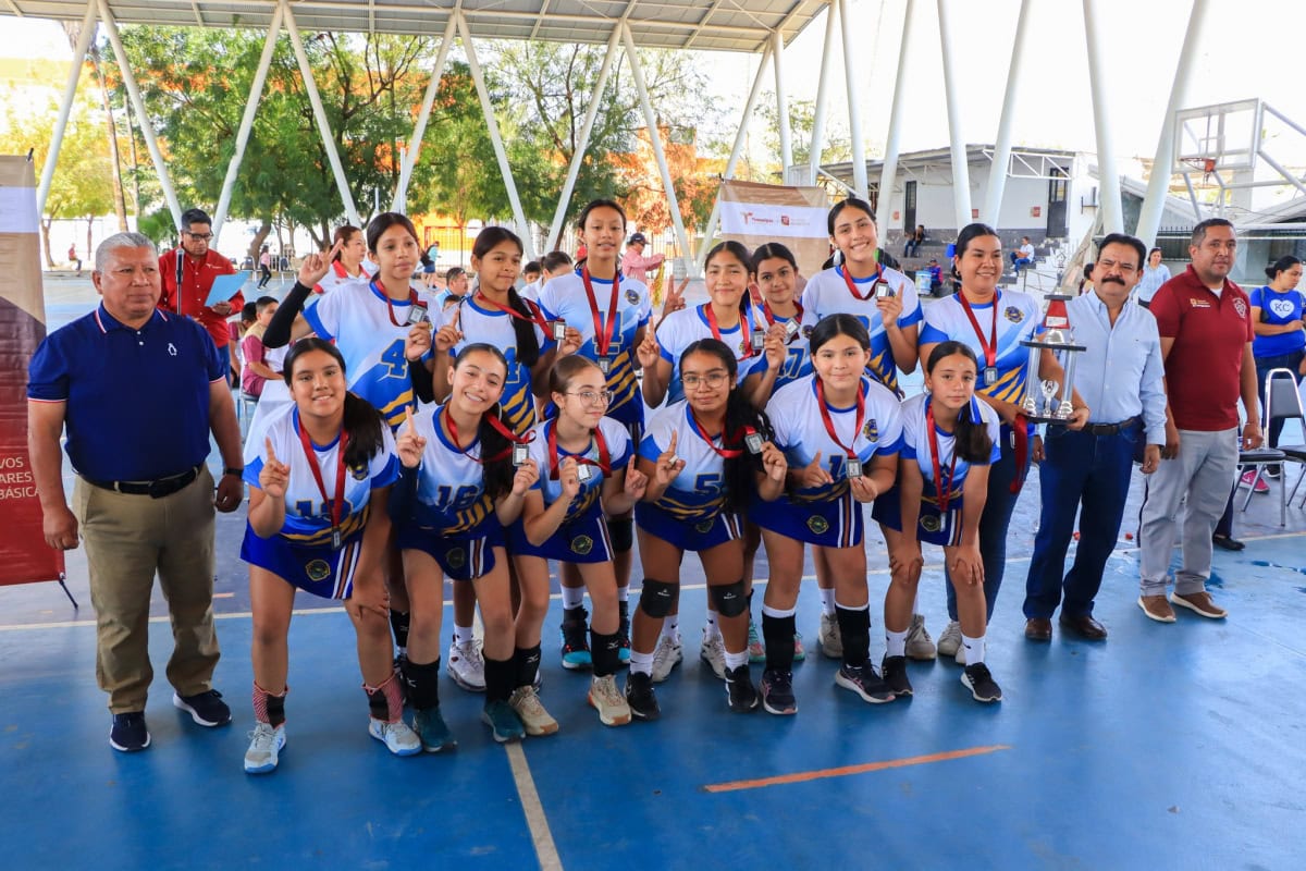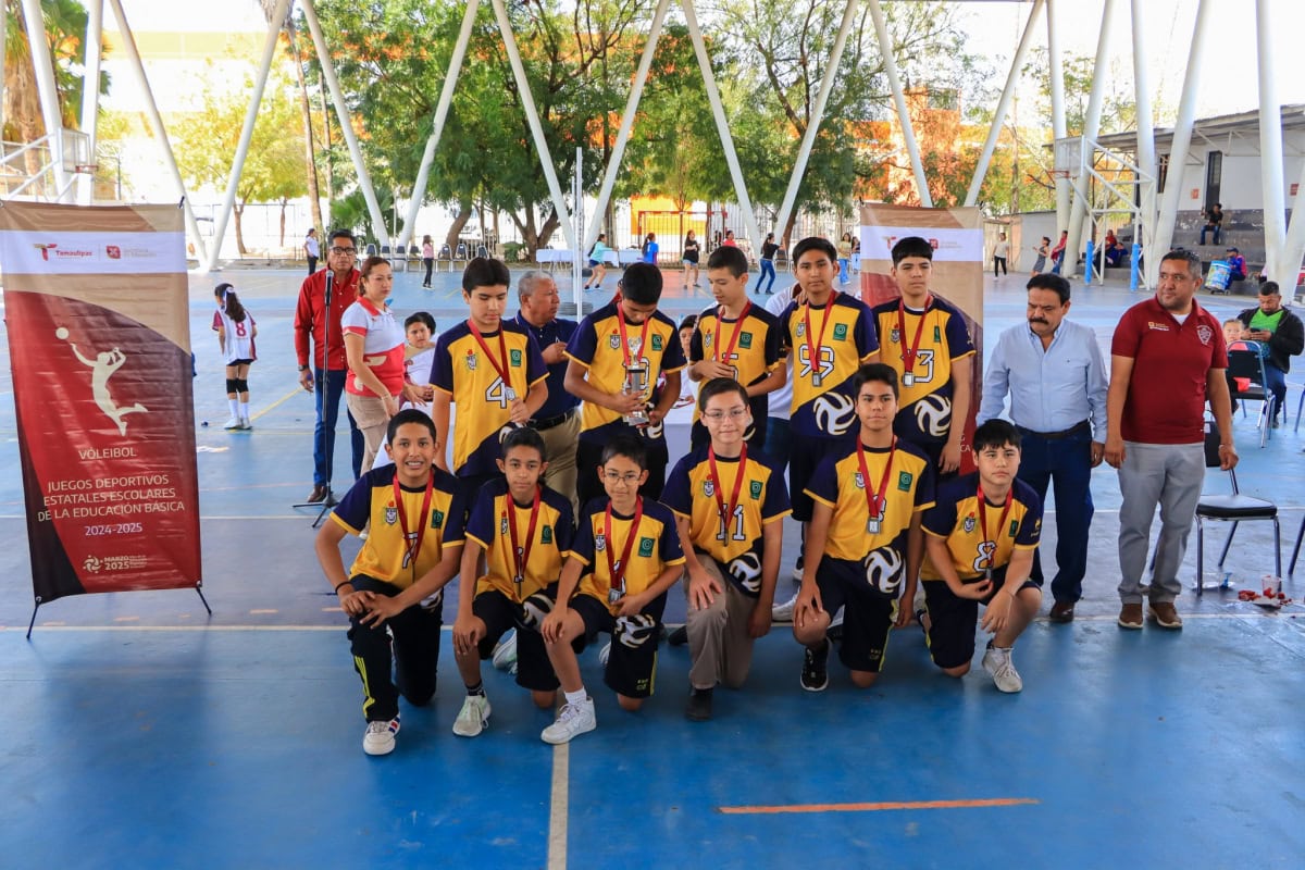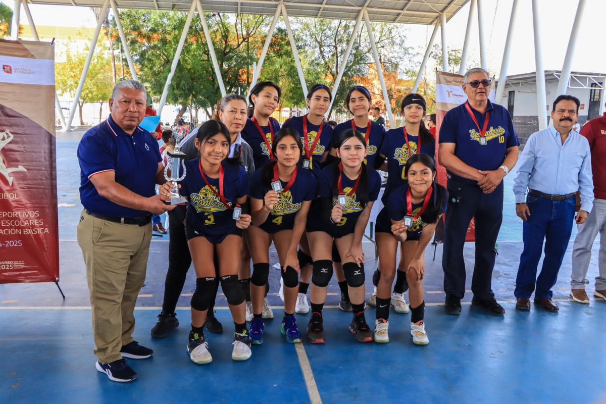 Se realizó la premiación de los primeros lugares en la competencia de voleibol, donde se entregaron trofeos y medallas a los equipos ganadores por parte de la Coordinación de Educación Física de la Subsecretaría de Educación Básica de la SET.