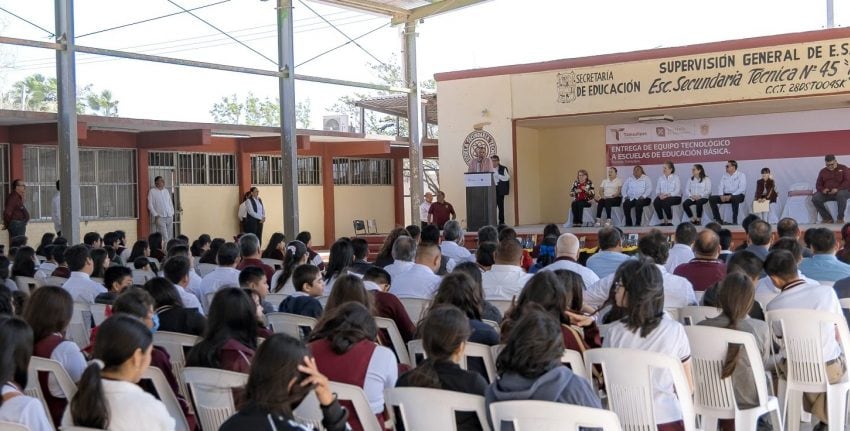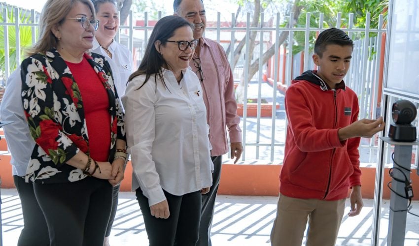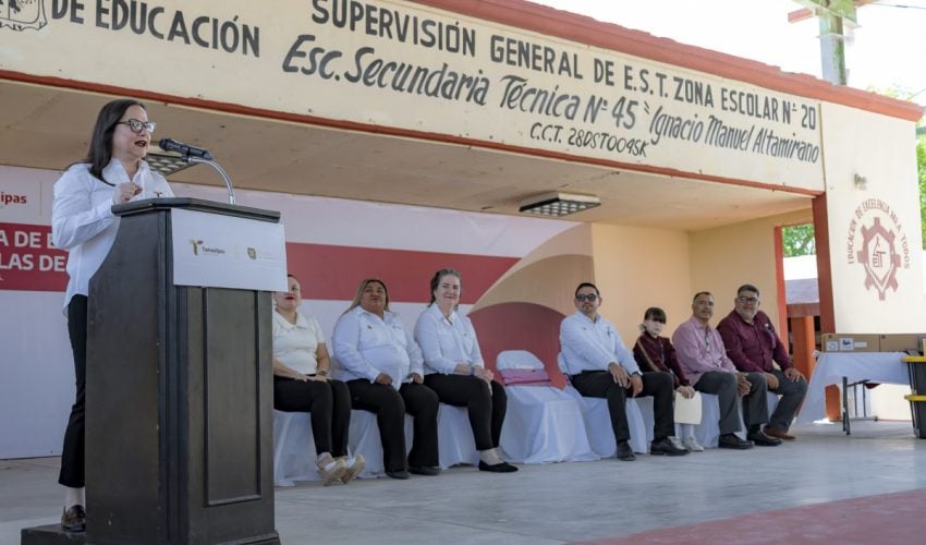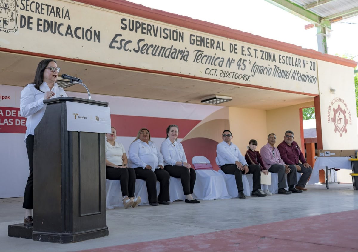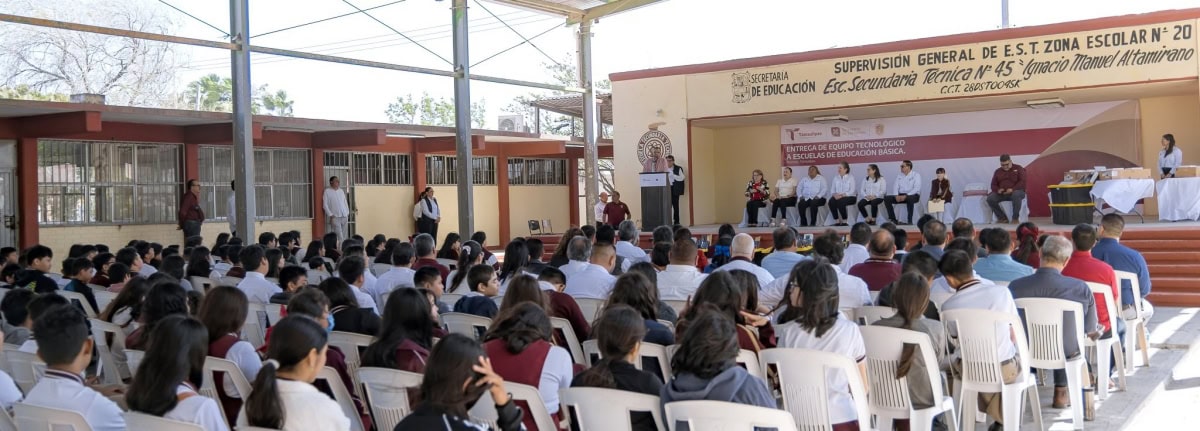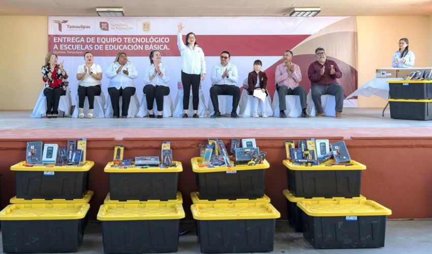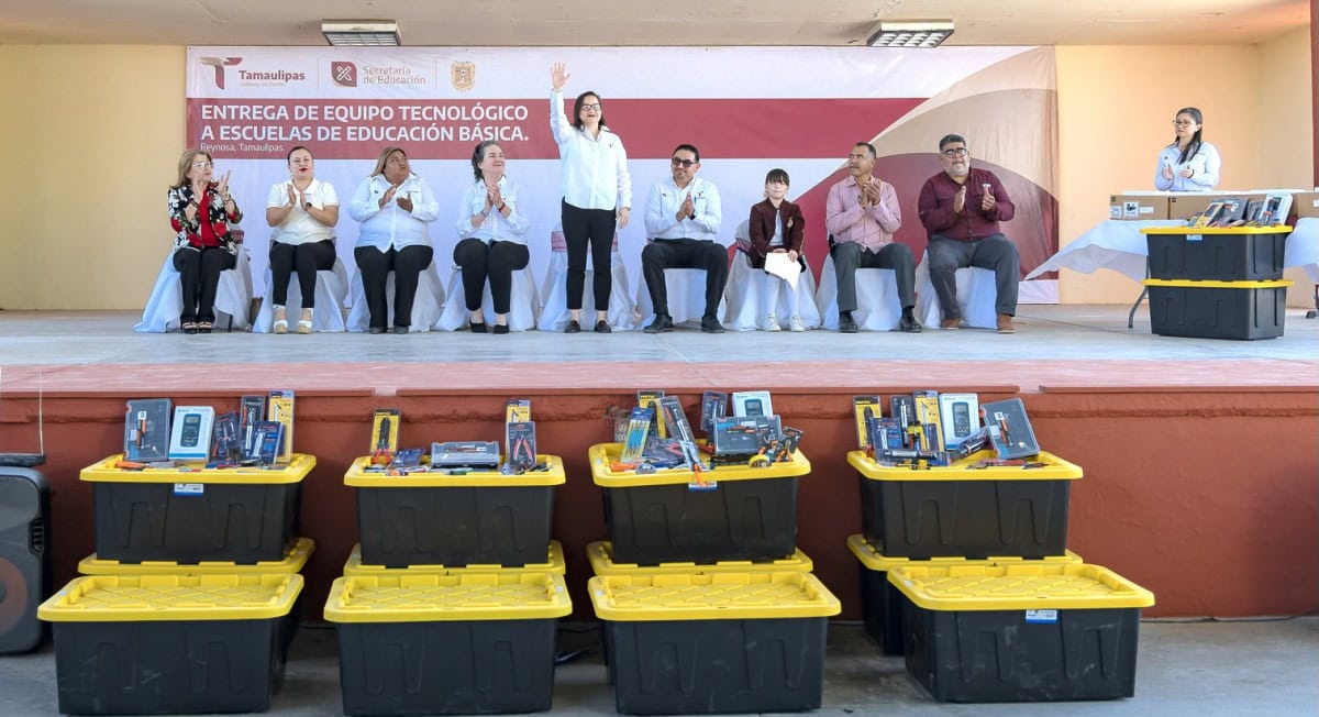 Cumpliendo con dicha iniciativa, la titular de la SET, Lucía Aimé Castillo Pastor, visitó la Escuela Secundaria Técnica No. 45 “Ignacio M. Altamirano”, ubicada en la colonia Benito Juárez de la ciudad de Reynosa, para hacer entrega de kits de robótica, tabletas, carritos solares y materiales de electrónica a diversas escuelas de la localidad.