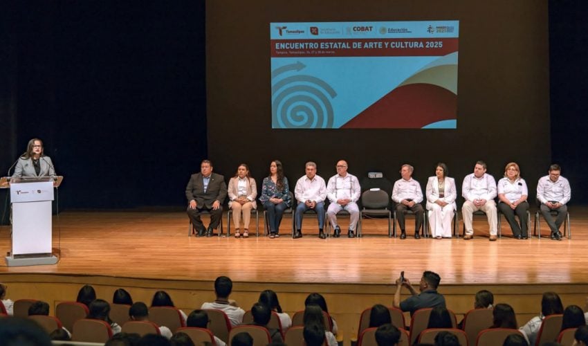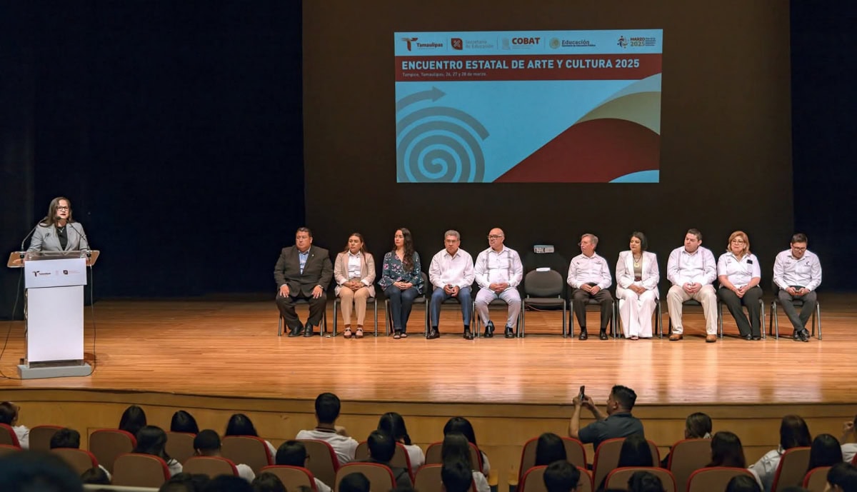 Con la representación personal del gobernador Américo Villarreal Anaya, la secretaria de Educación de Tamaulipas, Lucía Aimé Castillo Pastor, junto a autoridades municipales e integrantes de la comunidad educativa, inauguró el Encuentro Estatal de Arte y Cultura del Colegio de Bachilleres del Estado de Tamaulipas COBAT 2025, en las instalaciones del Teatro Metropolitano, en Tampico.