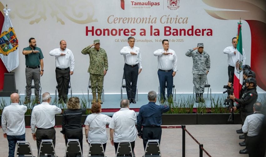 Esta mañana, el secretario de Educación de Tamaulipas, Miguel Ángel Valdez García, estuvo presente en la ceremonia de Honores a la Bandera, que presidió el gobernador Américo Villarreal Anaya.