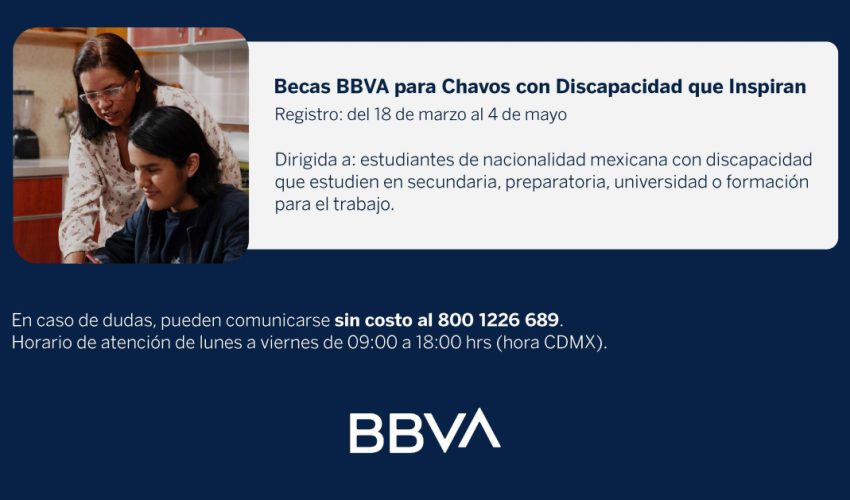 Fundación BBVA México da a conocer el Programa Becas BBVA para Chavos con Discapacidad que Inspiran, dirigido a estudiantes con discapacidad en secundaria, preparatoria, universidad y/o en formación para el trabajo.