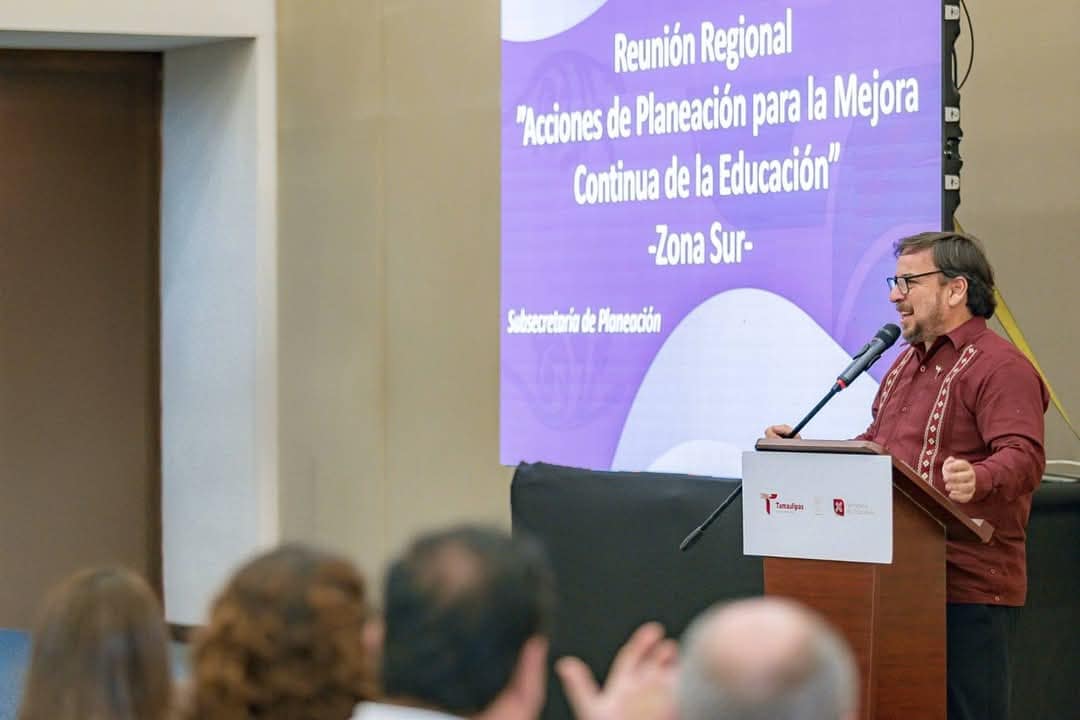 En la Reunión Regional “Acciones de Planeación para la Mejora Continua de la Educación”, el secretario de Educación de Tamaulipas, Miguel Ángel Valdez García, sostuvo un diálogo directo con jefes de sector, supervisores, directores, docentes y personal educativo de Tampico, Madero y Altamira, reconociendo su vocación y compromiso con la enseñanza.