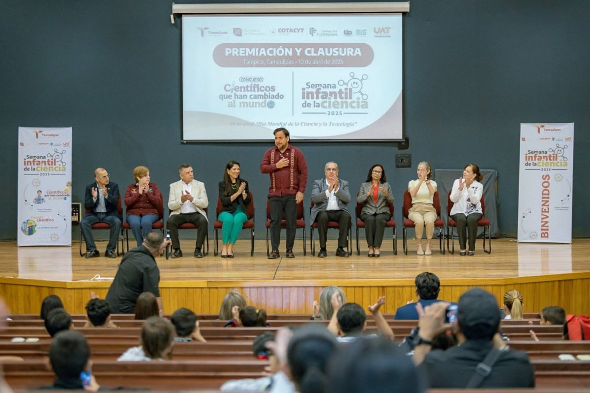 En el marco del cierre de la Semana Infantil de la Ciencia, se realizó la clausura oficial y la premiación del concurso “Científicos que han cambiado al mundo”, organizado por la Secretaría de Educación de Tamaulipas, a través del Consejo Tamaulipeco de Ciencia y Tecnología (COTACYT), celebrado en el auditorio “Enrique Collado Sámano” del Centro de Excelencia de Tampico.