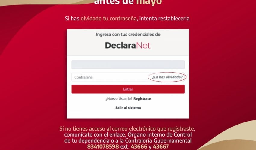 Para dudas o mayor información, llama al Órgano Interno de Control o a la Contraloría Gubernamental a los teléfonos: