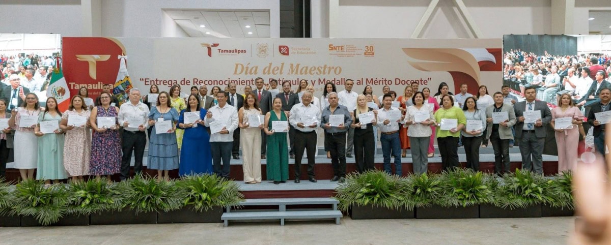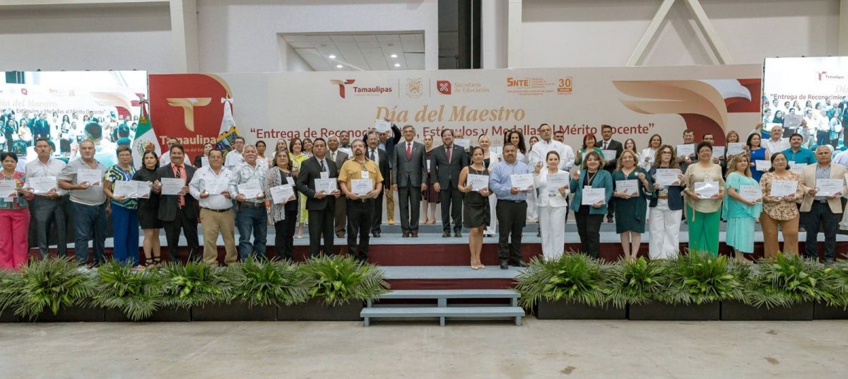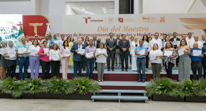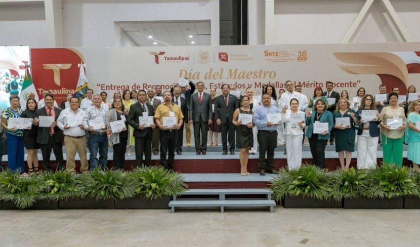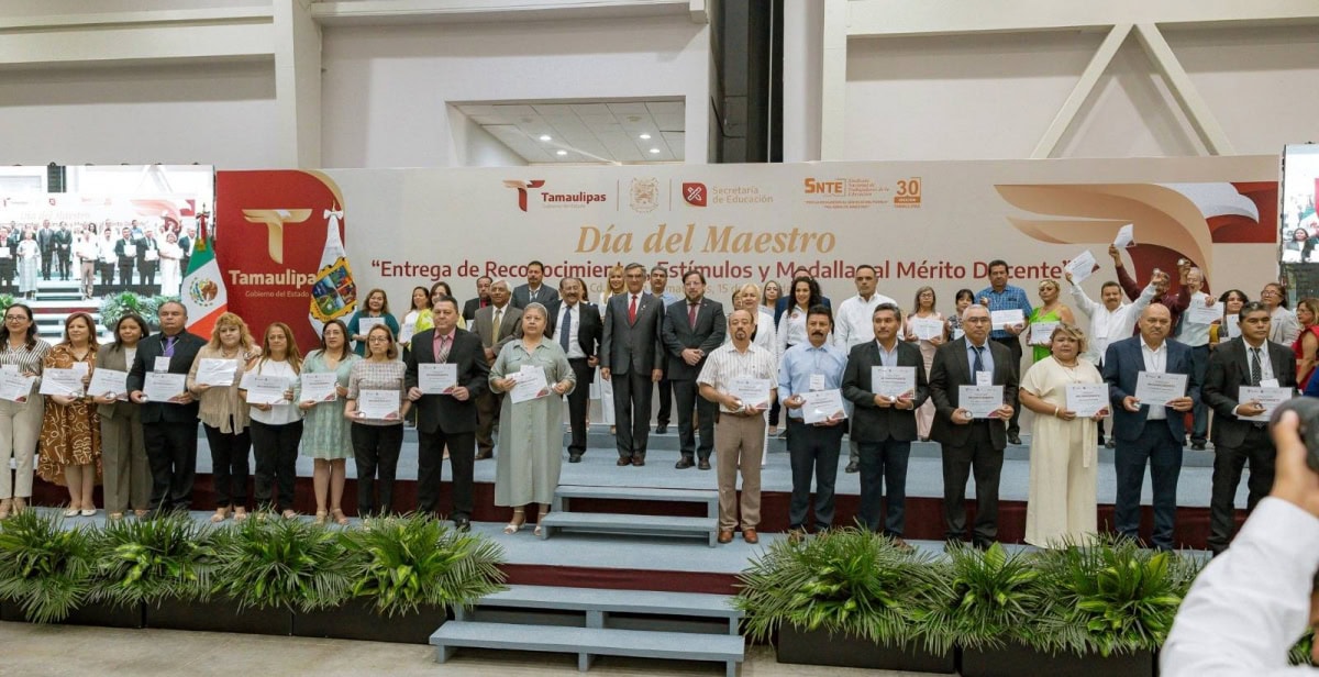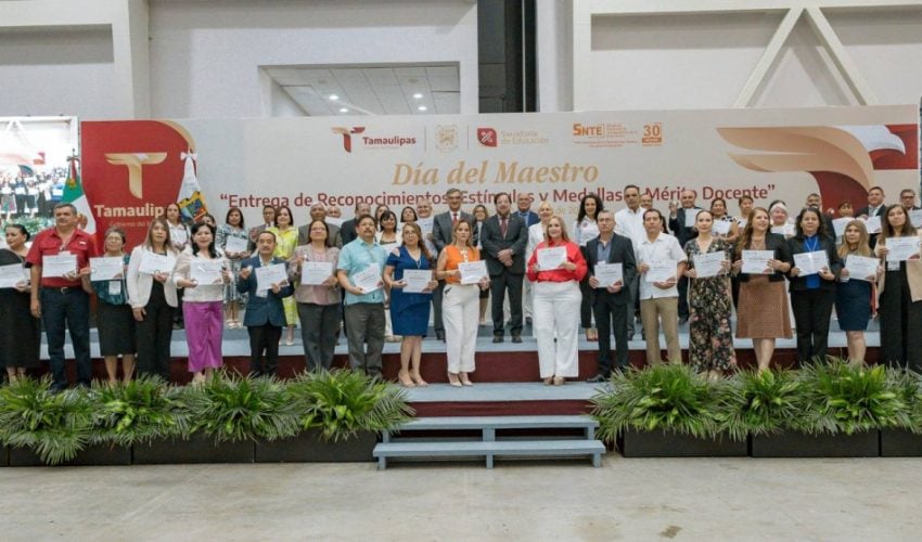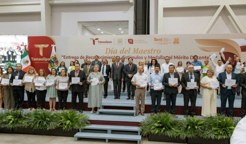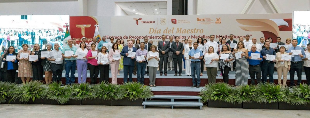 En una emotiva ceremonia, llena de orgullo por el deber cumplido por parte de las y los maestros, el Gobierno del Estado, a través de la Secretaría de Educación de Tamaulipas, reconoció y entregó estímulos y medallas al mérito docente a 479 docentes que cumplieron 30 años de servicio.