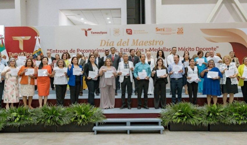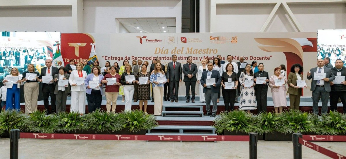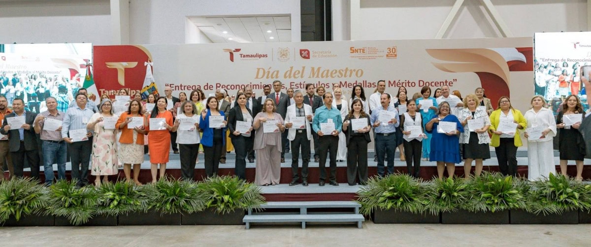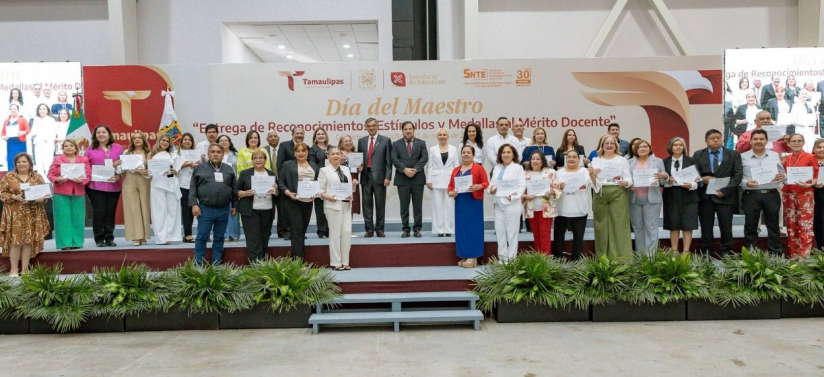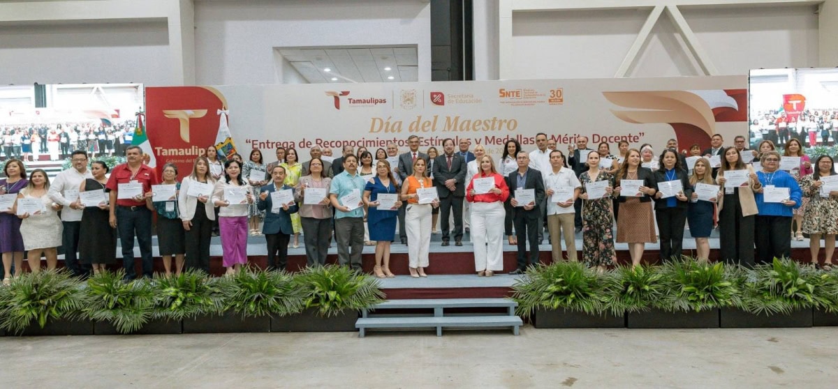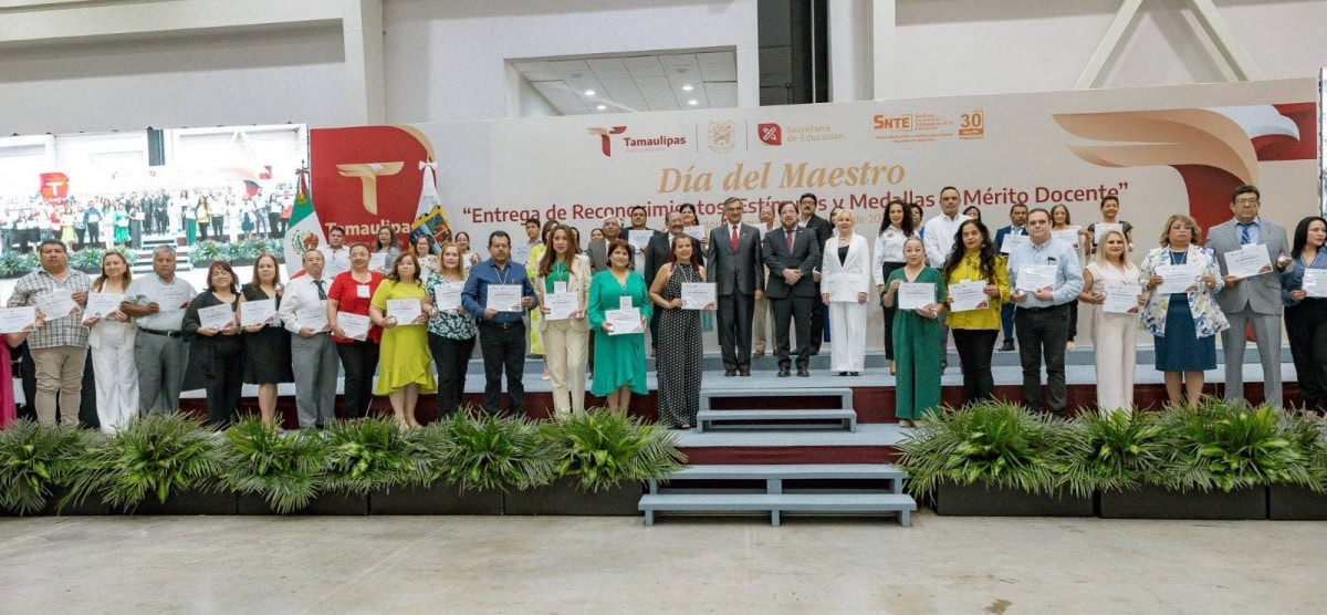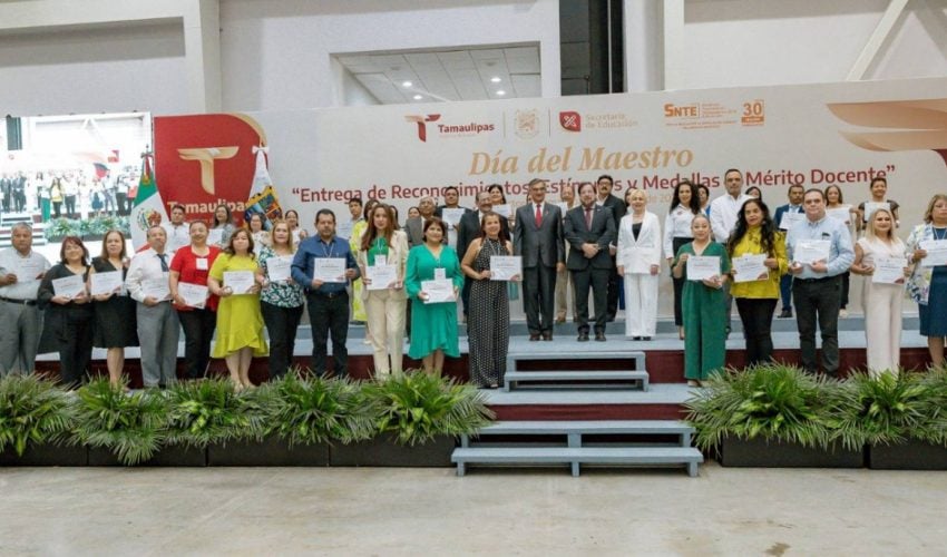 En una emotiva ceremonia, llena de orgullo por el deber cumplido por parte de las y los maestros, el Gobierno del Estado, a través de la Secretaría de Educación de Tamaulipas, reconoció y entregó estímulos y medallas al mérito docente a 479 docentes que cumplieron 30 años de servicio.
