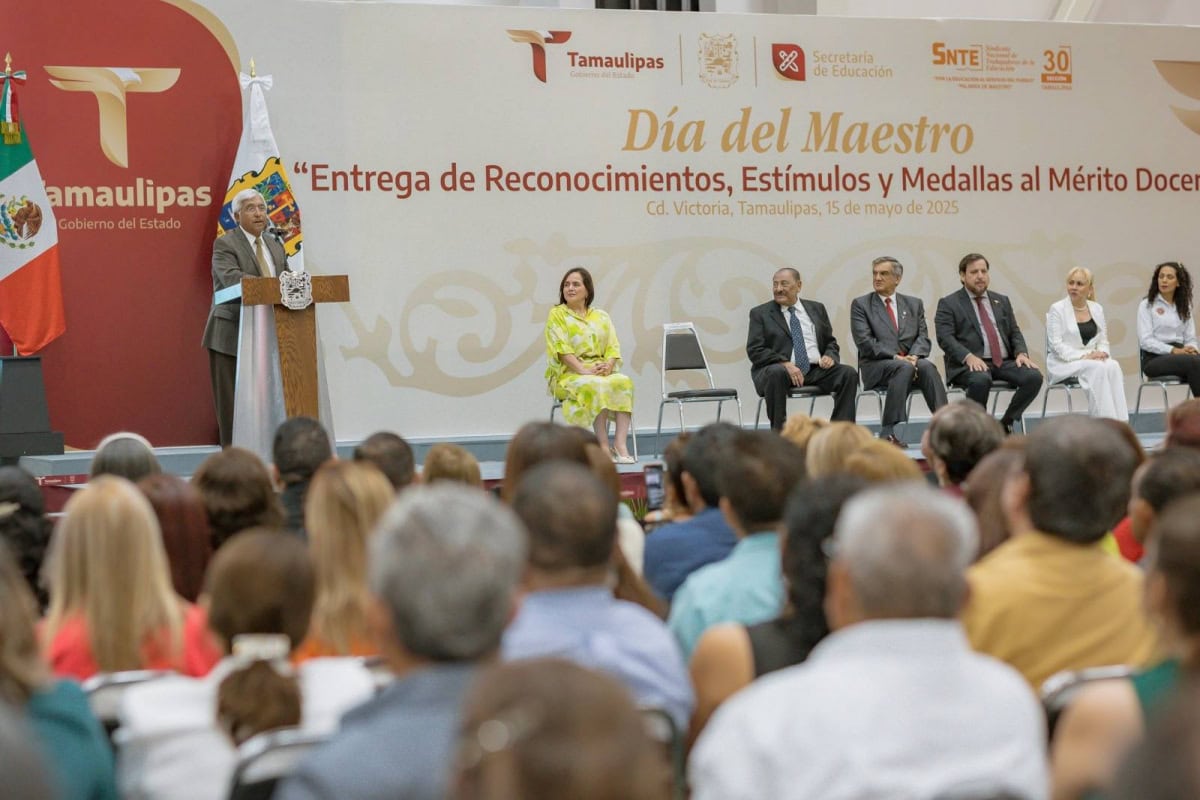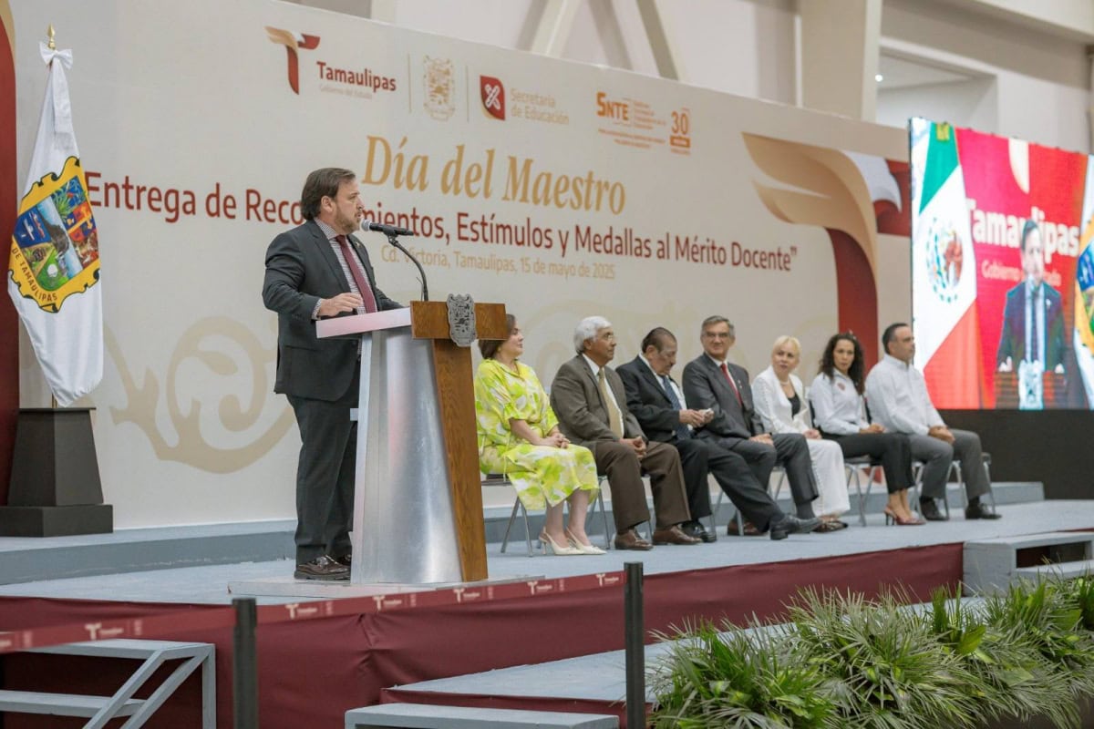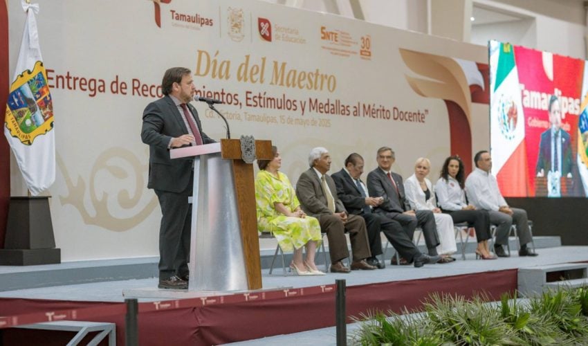 En su mensaje, Valdez García felicitó a las y los maestros y aseguró que eligieron la vocación más bonita, pues son las guías y los mentores de lo más importante: las niñas, los niños y los jóvenes de Tamaulipas.