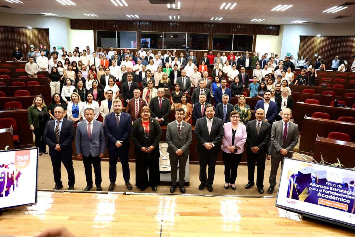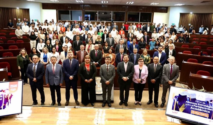 El secretario de Educación de Tamaulipas, Miguel Ángel Valdez García, participó como Testigo de Honor en la Firma de Alianzas Estratégicas entre la Universidad Autónoma de Tamaulipas (UAT) y las empresas internacionales Pearson y Punto Edu, en el marco del 75° aniversario de la UAT.