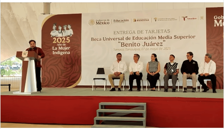Mensaje del secretario de Educación, Miguel Ángel Valdez García, en la Entrega de Tarjetas de la ‘Beca Universal de Educación Media Superior Benito Juárez’, realizada en Tampico y presidida por el gobernador del Estado, Américo Villarreal Anaya.