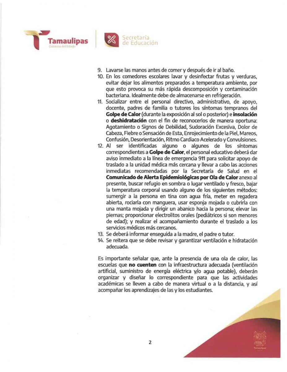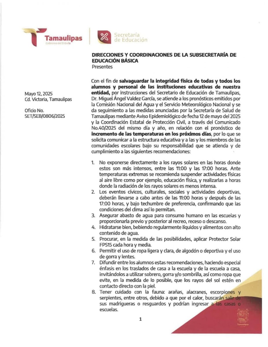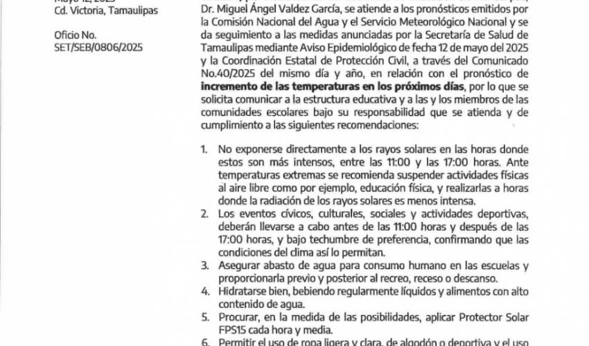 🔴☀️Ante el pronóstico del incremento de las temperaturas en la entidad, se comunican las recomendaciones y la toma de medidas correspondientes, acorde a lo dispuesto por la Secretaría de Salud de Tamaulipas.⤵️