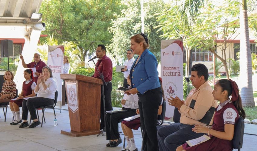 La subsecretaria de Planeación, Sylvia Isabel Martínez Guerra, y la subsecretaria de Educación Básica, Marcela Ramírez Jordán, de la Secretaría de Educación de Tamaulipas, que dirige Miguel Ángel Valdez García, presidieron el Séptimo Maratón por la Lectura, como parte de la Estrategia Nacional de Lectura (ENL) 2024-2030, en la Secundaria Técnica No. 90 de Ciudad Victoria, ante más de 400 asistentes que participaron en lecturas, expresiones artísticas y dinámicas escolares para conmemorar el Día de la Maestra y el Maestro.