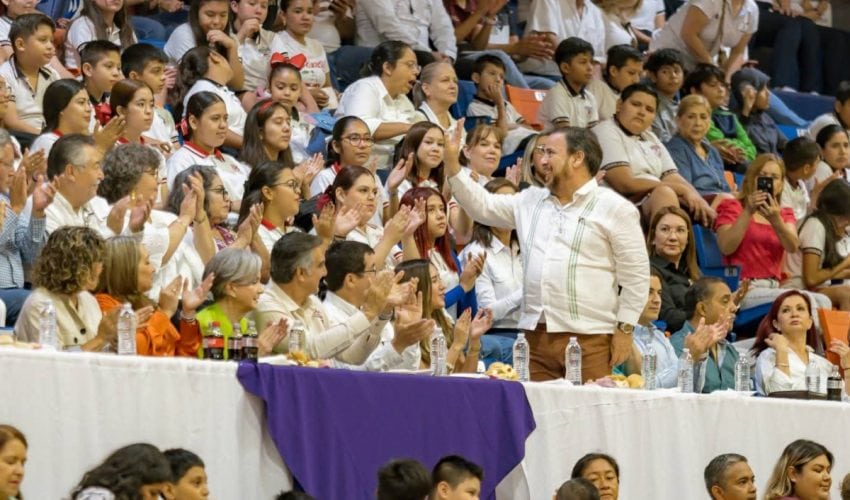 El titular de la Secretaría de Educación de Tamaulipas, Miguel Ángel Valdez García, acompañó al gobernador del Estado, Américo Villarreal Anaya, y a la presidenta del Sistema DIF Tamaulipas, Dra. María de Villarreal, a la final estatal del Concurso de Rondas Infantiles y Salto de Cuerda 2025 La Tradición nos une.