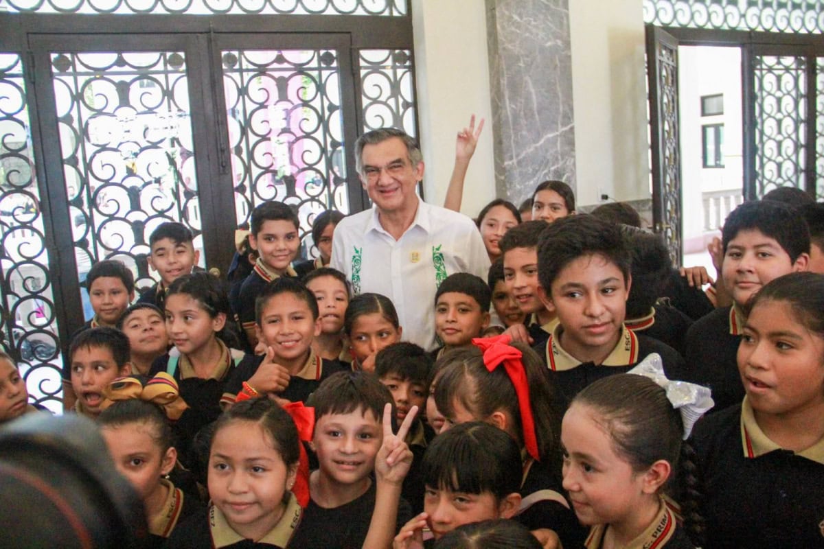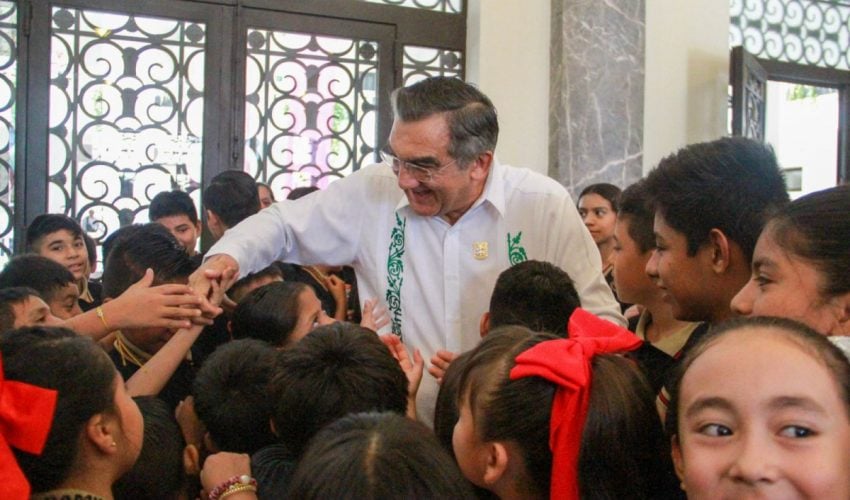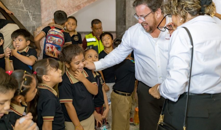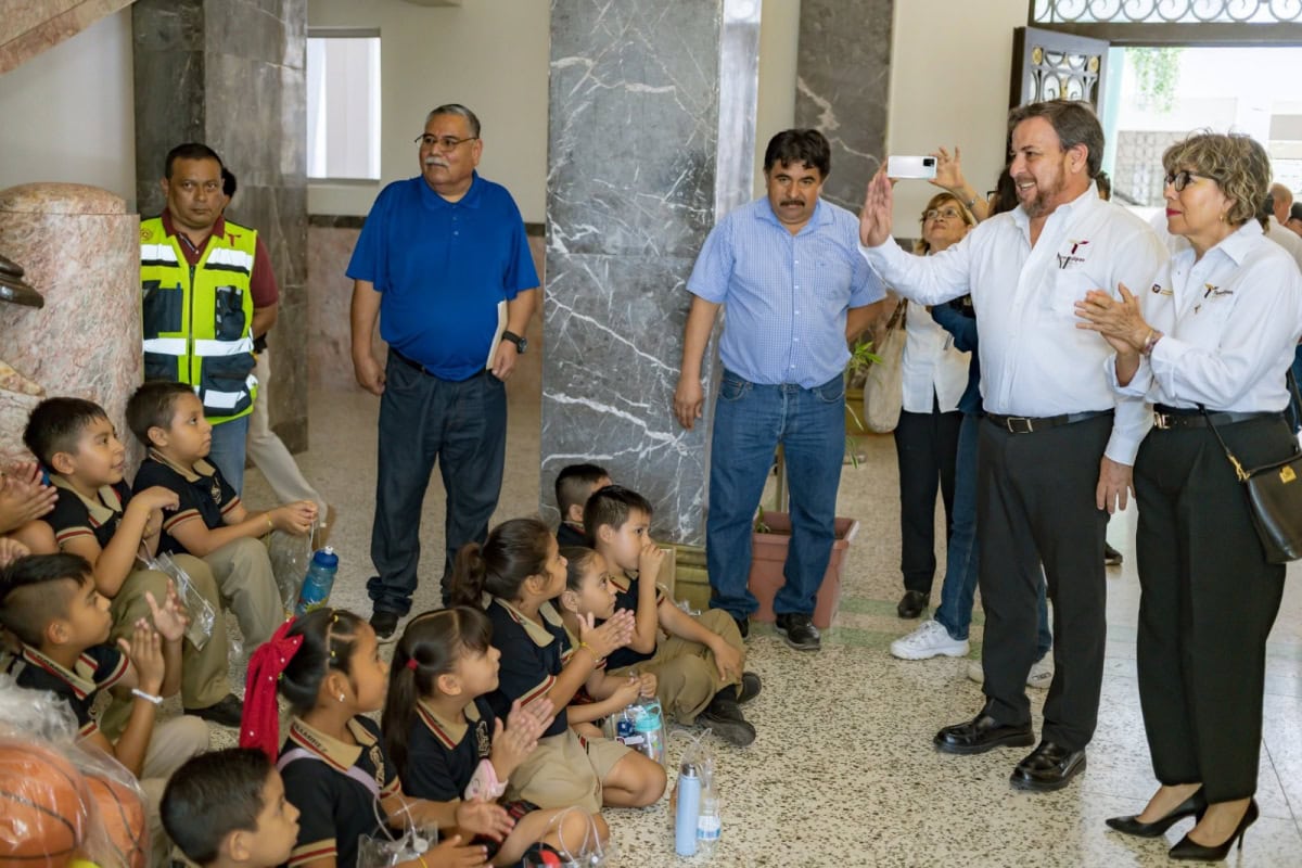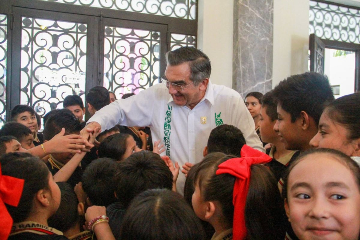 El gobernador del Estado, Américo Villarreal Anaya, así como el secretario de Educación, Miguel Ángel Valdez García, y la secretaria de Bienestar Social, Silvia Casas González, convivieron con las niñas y niños del ejido Guadalupe Victoria, quienes asisten a la Escuela Primaria “Ignacio Ramírez Hernández”, en su visita a Palacio de Gobierno, actividad que realizan en el marco de la estrategia Academia Social de Valores, la cual promueve el civismo, la identidad y la participación entre la niñez y la adolescencia en el estado.