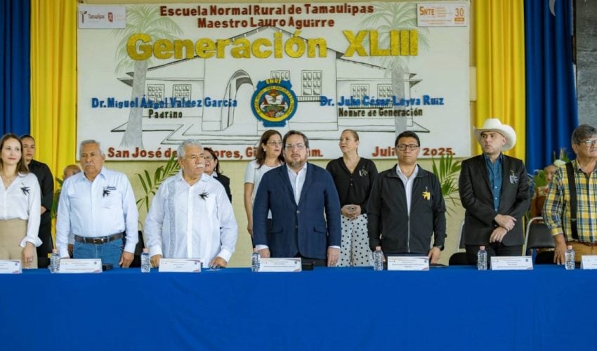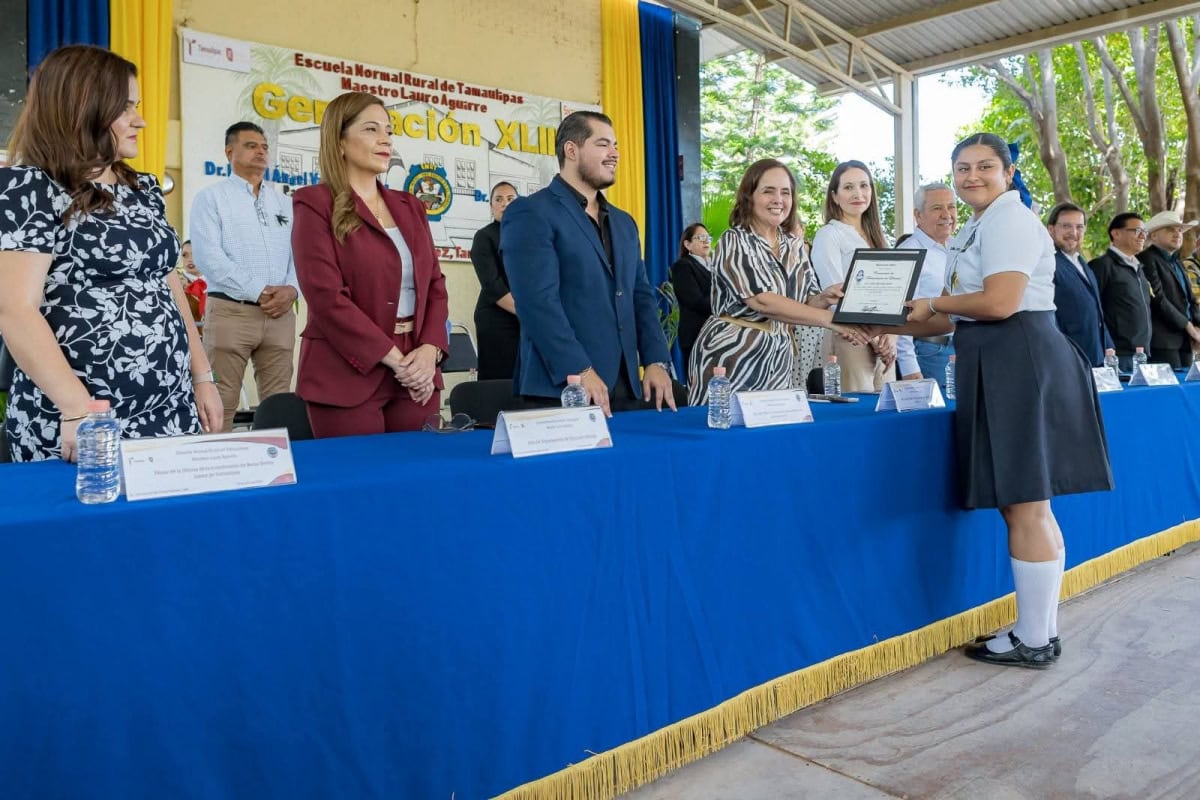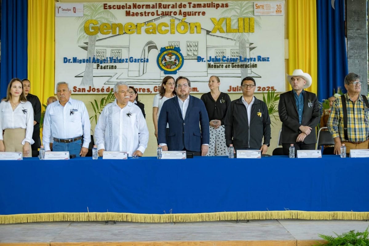 El secretario de Educación de Tamaulipas, Miguel Ángel Valdez García, presidió la ceremonia de graduación de 85 alumnas y alumnos de la Escuela Normal Rural “Maestro Lauro Aguirre”, ubicada en el ejido San José de las Flores, en el municipio de Güémez.