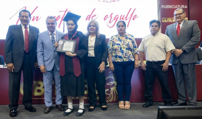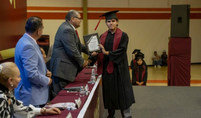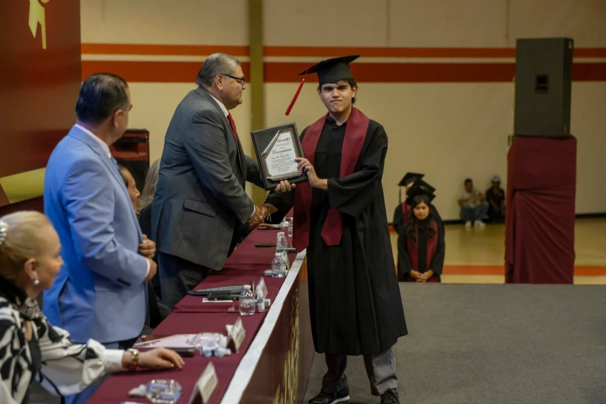 Con la representación del gobernador Américo Villarreal Anaya, Aguilar Cuesta felicitó a las y los graduados, invitándoles a dar su mayor empeño para continuar con sus estudios, ya que en Tamaulipas la formación académica de las y los estudiantes es una prioridad que el secretario de Educación, Miguel Ángel Valdez García, impulsa para avanzar en la transformación educativa.