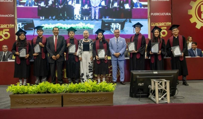 Se entregaron constancias a 777 alumnas y alumnos egresados de seis especialidades: Administración de Recursos Humanos, Contabilidad, Programación, Electricidad, Laboratorio Químico y Puericultura, de los cuales 80 cursaron el modelo de educación dual, siendo la tercera generación en hacerlo.