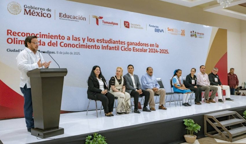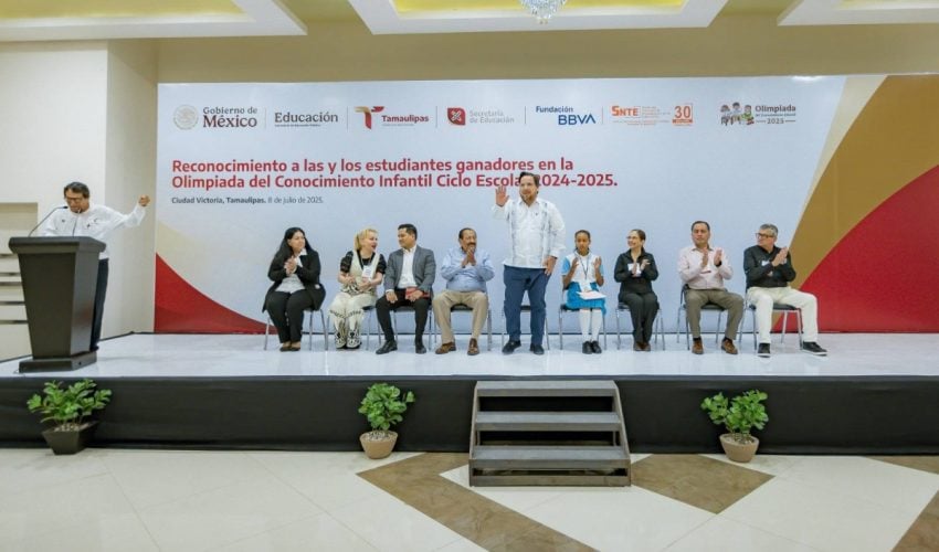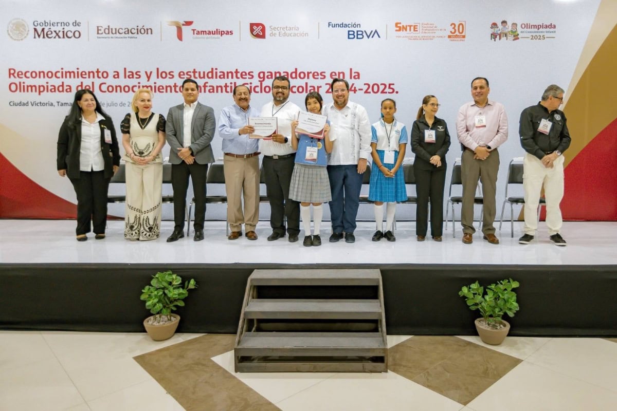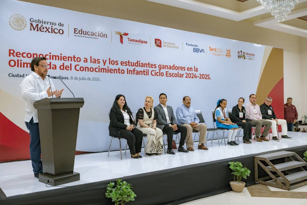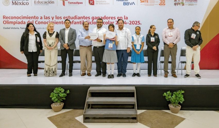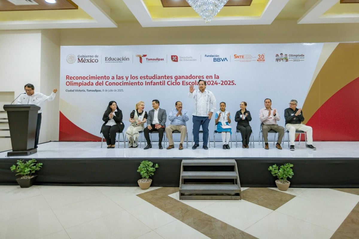 En un acto de orgullo para la comunidad educativa, el secretario de Educación de Tamaulipas, Miguel Ángel Valdez García, presidió acompañado del secretario general del SNTE Sección 30, Arnulfo Rodríguez Treviño, la ceremonia de entrega de reconocimientos a las alumnas y alumnos ganadores de la Olimpiada del Conocimiento Infantil 2025. Durante la ceremonia se destacó el esfuerzo académico de 24 estudiantes de sexto grado de 22 escuelas de toda la entidad.