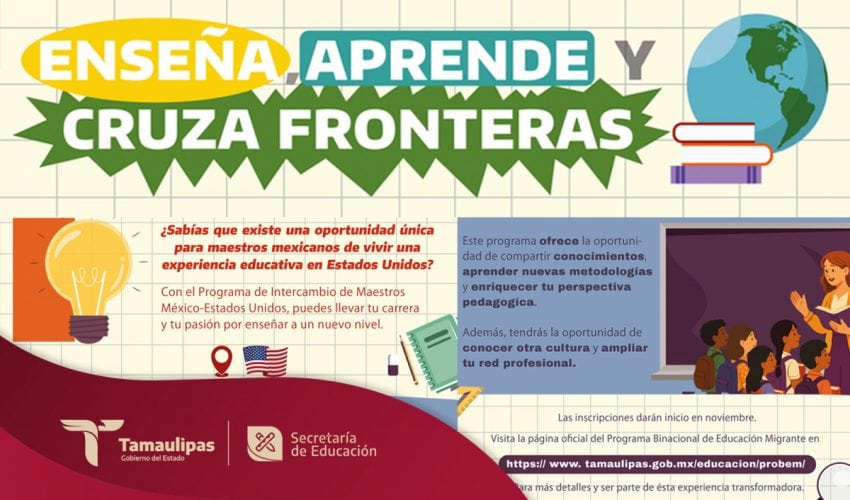 Con el propósito de fortalecer la atención educativa de las niñas, niños y adolescentes de origen mexicano y en situación de movilidad, que se encuentran en Estados Unidos enfrentando desafíos para acceder a una educación de calidad; el Programa de Intercambio de Maestros México-Estados Unidos que ofrece la Secretaría de Educación de Tamaulipas, permite a docentes mexicanos una oportunidad única de profesionalización internacional.