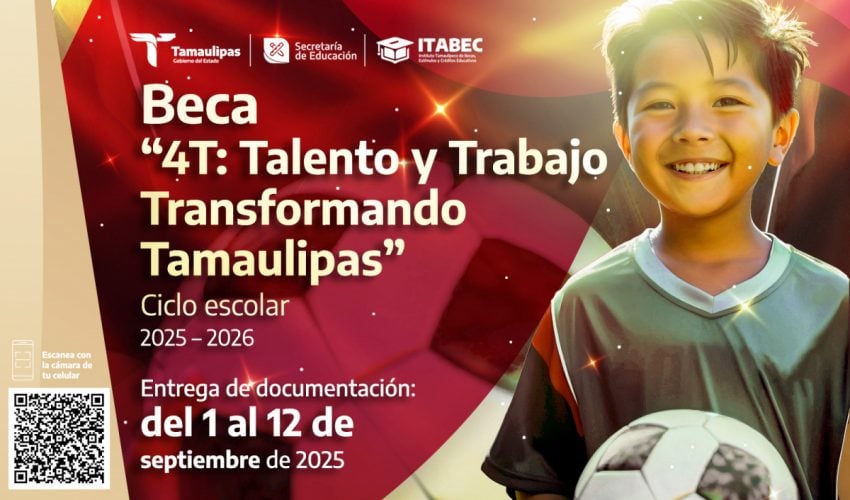 Beca “4T: Talento y Trabajo Transformando Tamaulipas”, del ciclo escolar 2025-2026