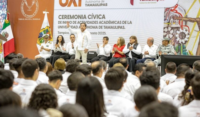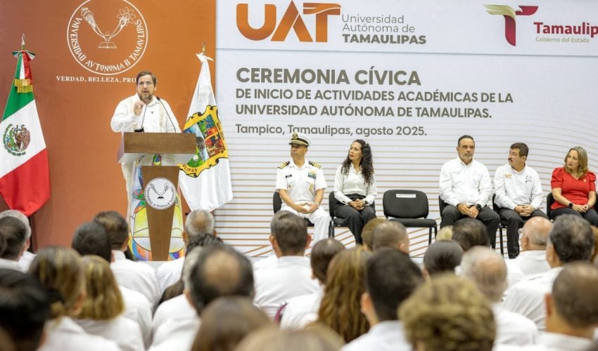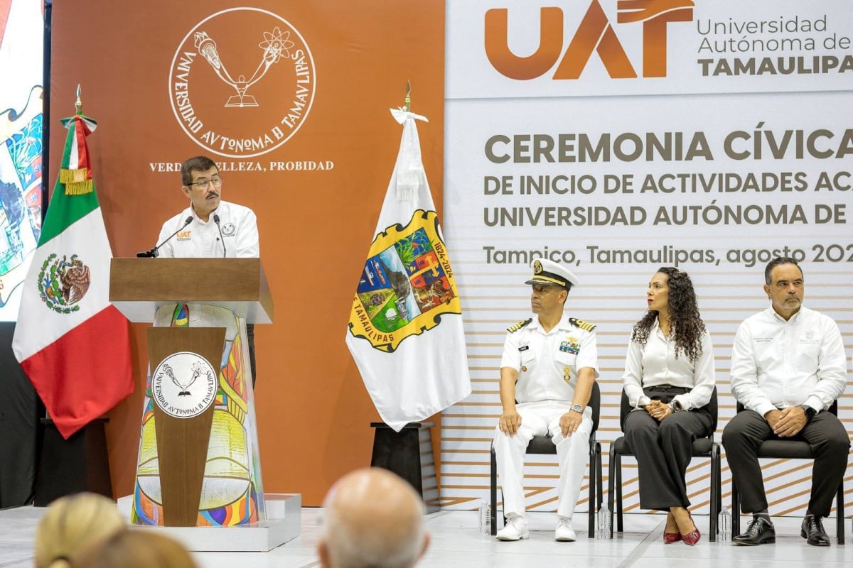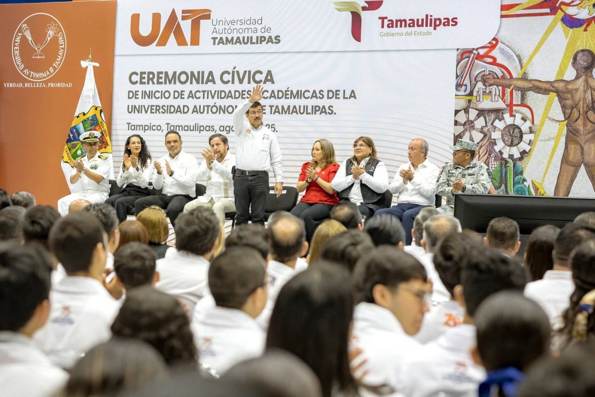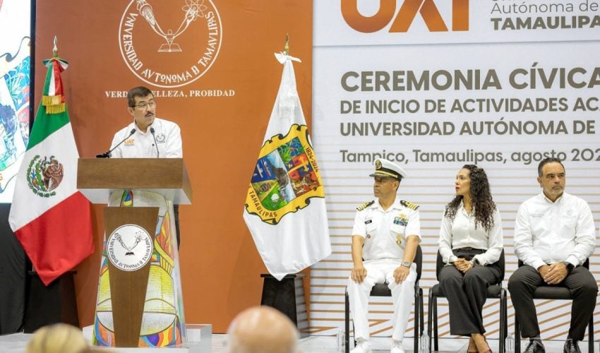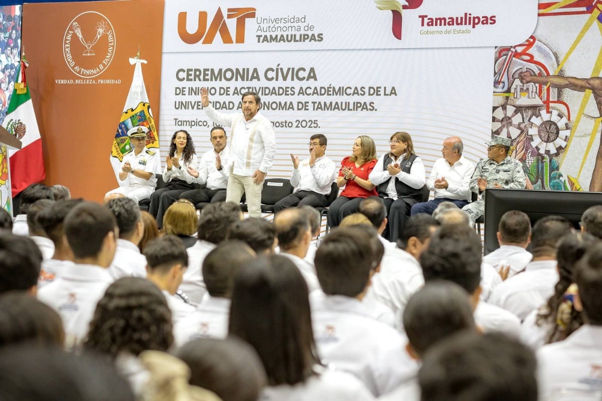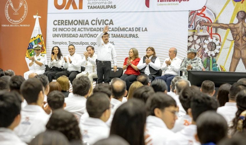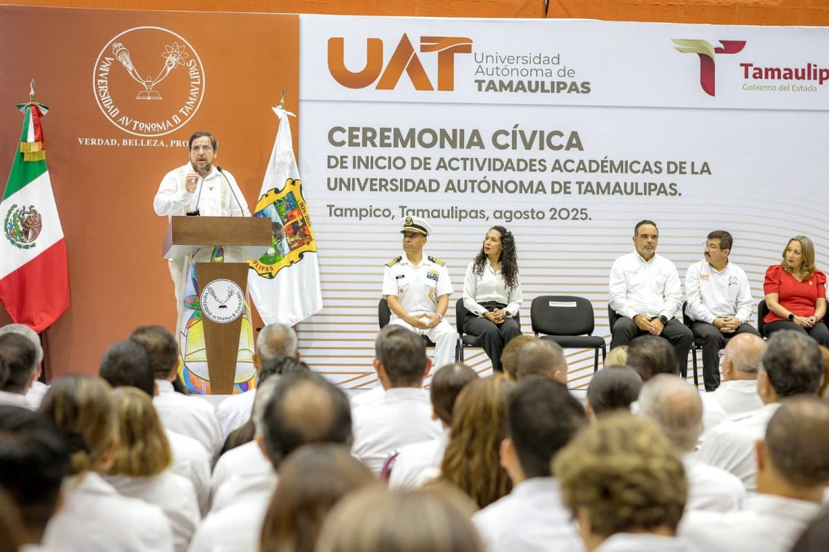 En ceremonia presidida por el rector de la Universidad Autónoma de Tamaulipas (UAT), Dámaso Anaya Alvarado, y con la presencia del secretario de Educación, Miguel Ángel Valdez García, en representación oficial del gobernador de Tamaulipas, Américo Villarreal Anaya, así como de autoridades universitarias, representantes de los tres niveles de gobierno y más de 1,900 asistentes, entre estudiantes, docentes e invitados especiales, la máxima casa de estudios en la entidad inició oficialmente sus actividades académicas 2025-2026 en el Gimnasio Multidisciplinario del Campus Tampico.