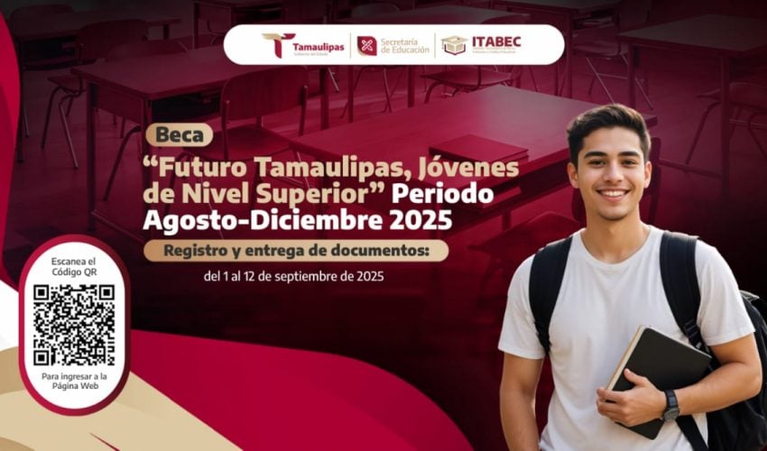 El Gobierno del Estado de Tamaulipas a través de la Secretaría de Educación y el Instituto Tamaulipeco de Becas, Estímulos y Créditos Educativos invitan a tramitar la Beca “Futuro Tamaulipas, Jóvenes de Nivel Superior”, del periodo Agosto-Diciembre 2025.