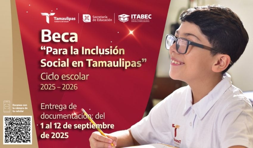El Gobierno del Estado de Tamaulipas a través de la Secretaría de Educación y el Instituto Tamaulipeco de Becas, Estímulos y Créditos Educativos invita a las y los estudiantes en situación de vulnerabilidad por discapacidad motriz, visual, auditiva y/o intelectual leve, que se encuentren realizando estudios en instituciones públicas o privadas con validez oficial del Sistema Educativo Estatal en los Niveles de Primaria, Secundaria, Medio Superior y Superior, a tramitar la Beca “Para la Inclusión Social en Tamaulipas” del Ciclo Escolar 2025-2026.