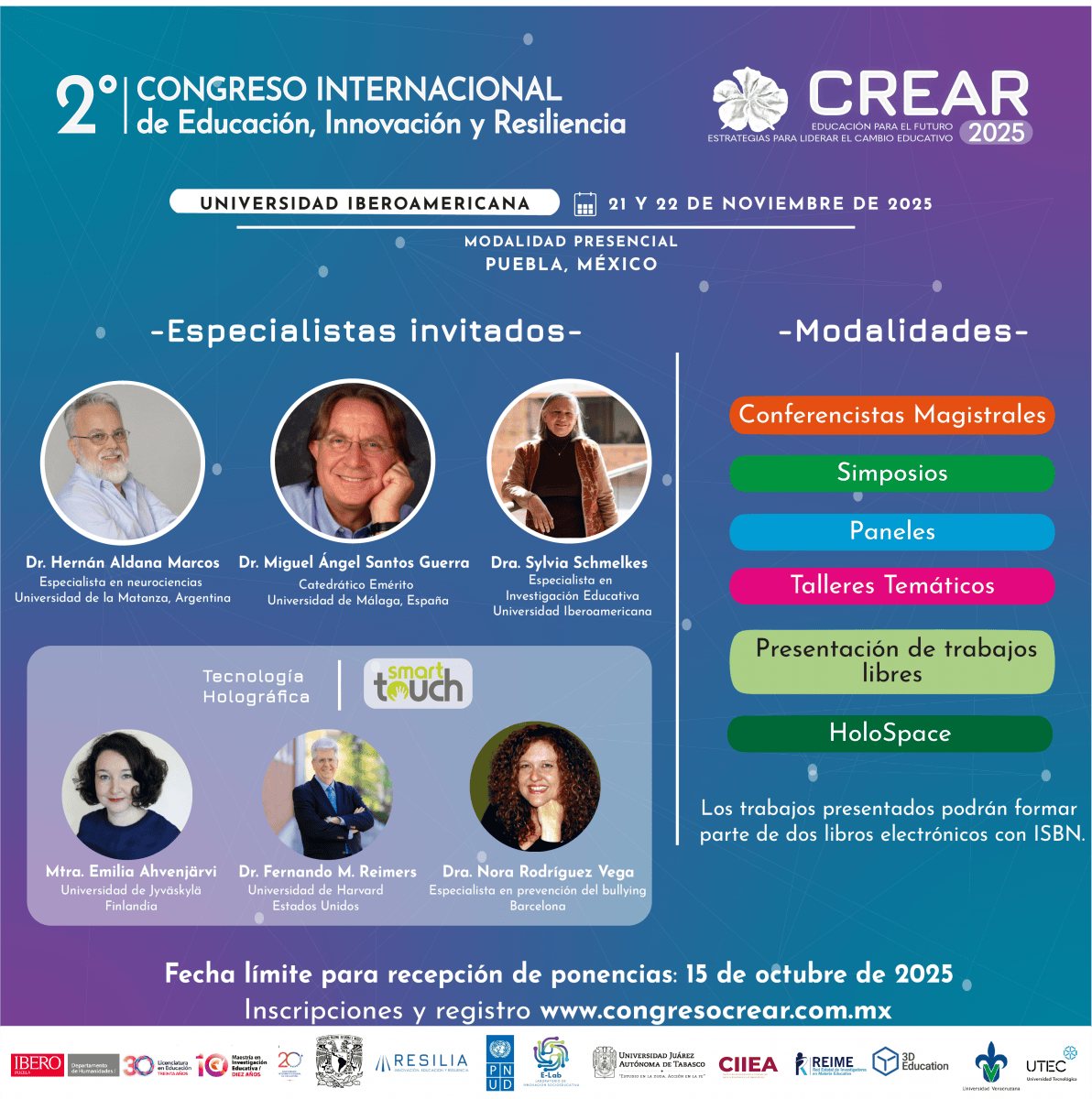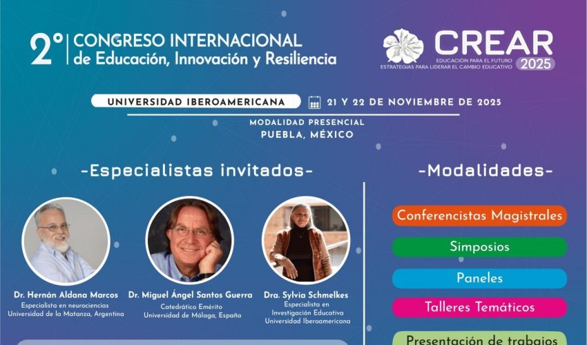 Se invita al 2º Congreso Internacional de Educación, Innovación y Resiliencia – CREAR 2025, un espacio para repensar la educación desde la innovación, el liderazgo y la resiliencia.