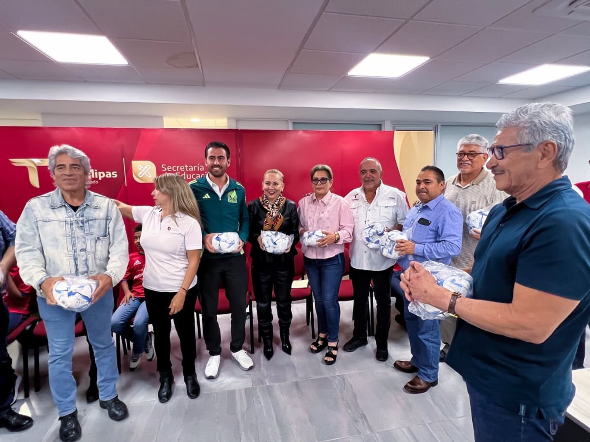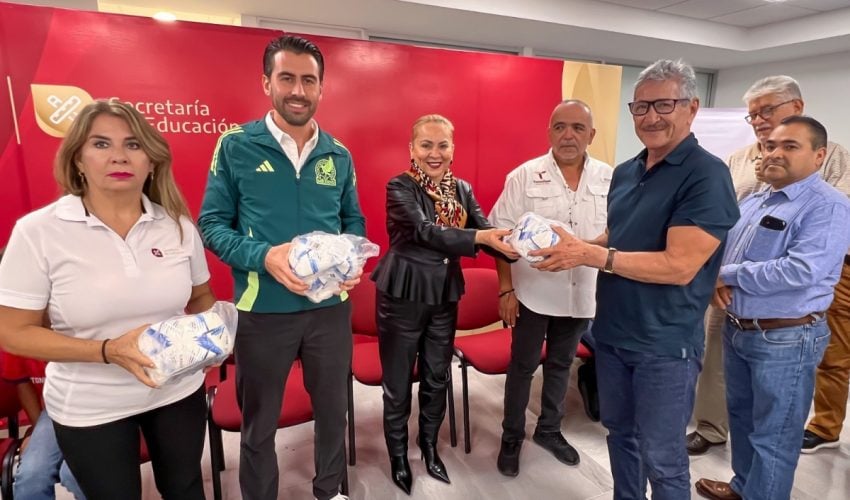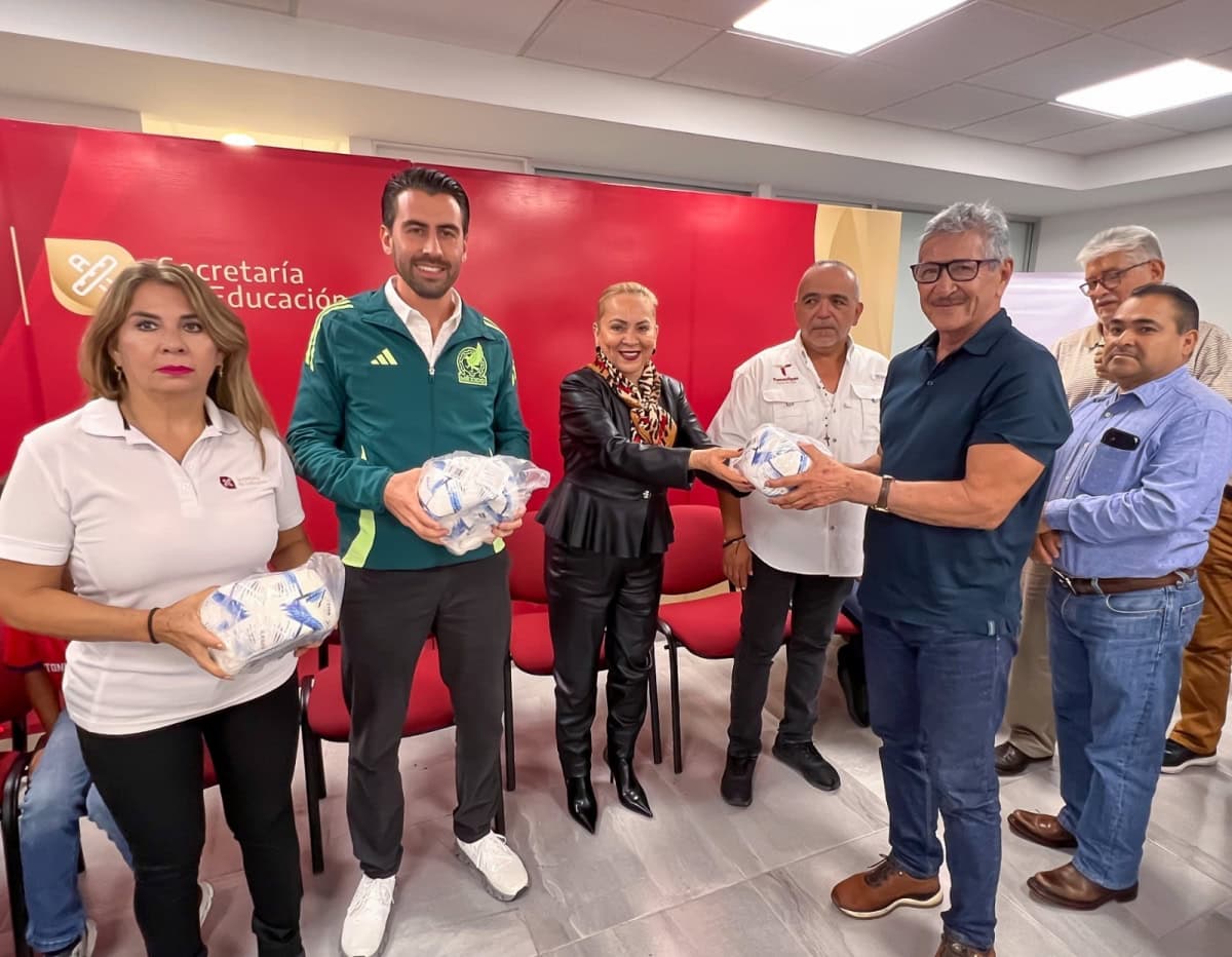 Asimismo, en este evento se hizo entrega de manera simbólica de balones que benefician a estudiantes de 150 escuelas primarias en todo el estado.