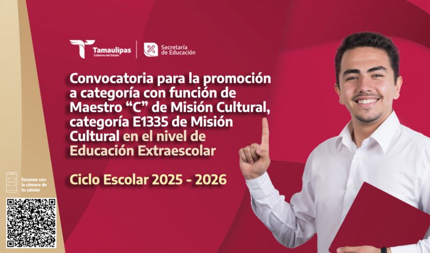 La Secretaría de Educación de Tamaulipas, invita a participar en el Concurso para la Promoción de la clave presupuestal Maestro “C” de Misión Cultural categoría E1335, ciclo escolar 2025-2026.