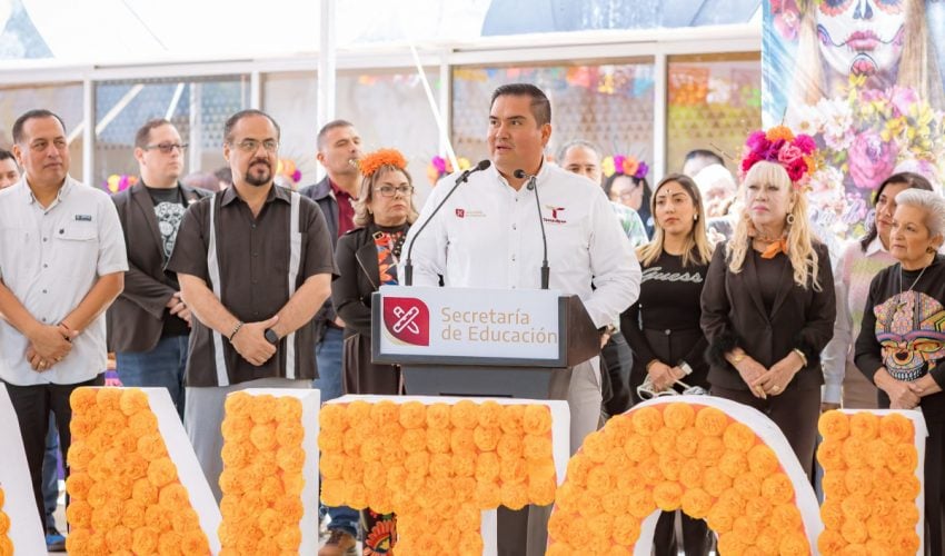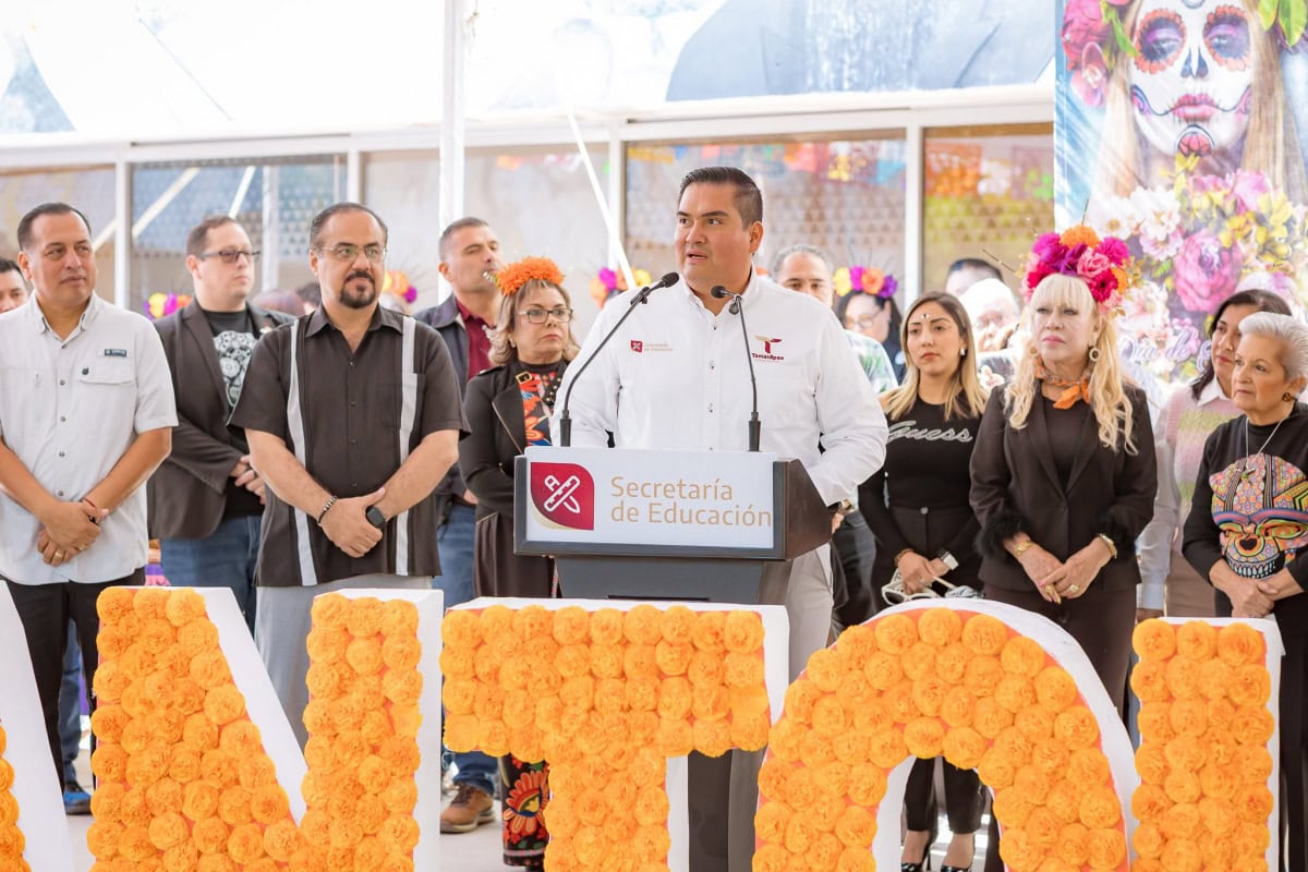 Con el propósito de preservar las tradiciones que dan identidad a nuestro pueblo, la Secretaría de Educación de Tamaulipas conmemoró el Día de Muertos con la instalación de un monumental altar y un festival artístico en la explanada principal de la dependencia.