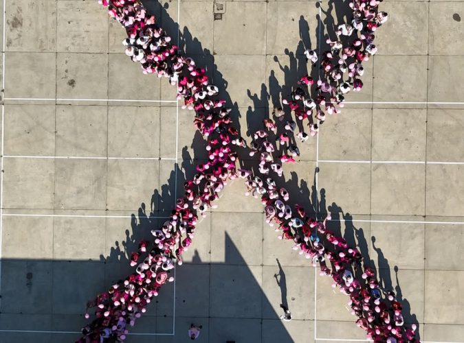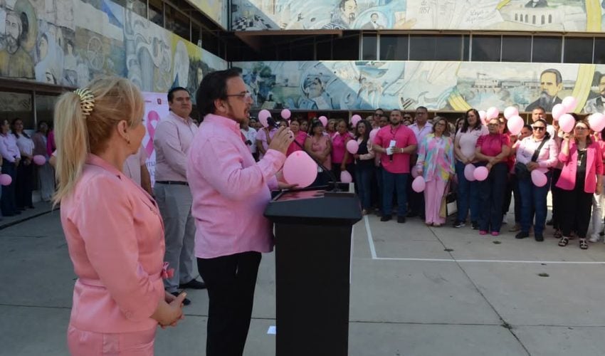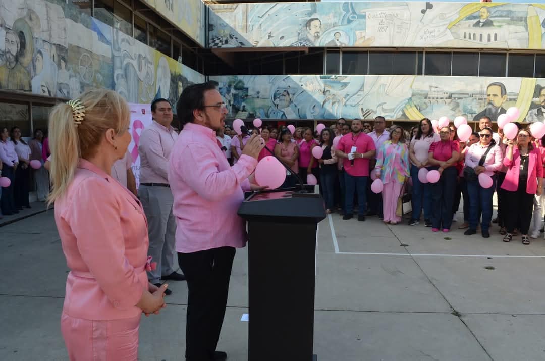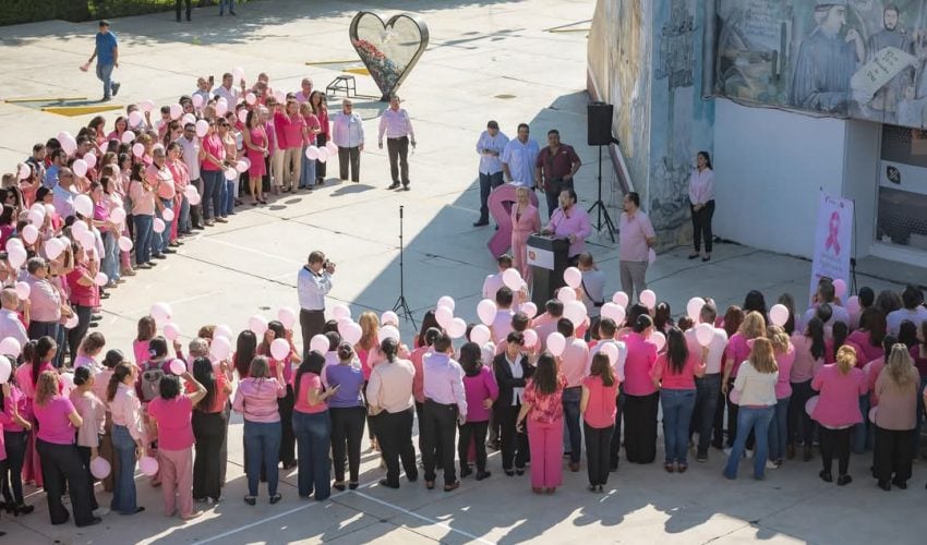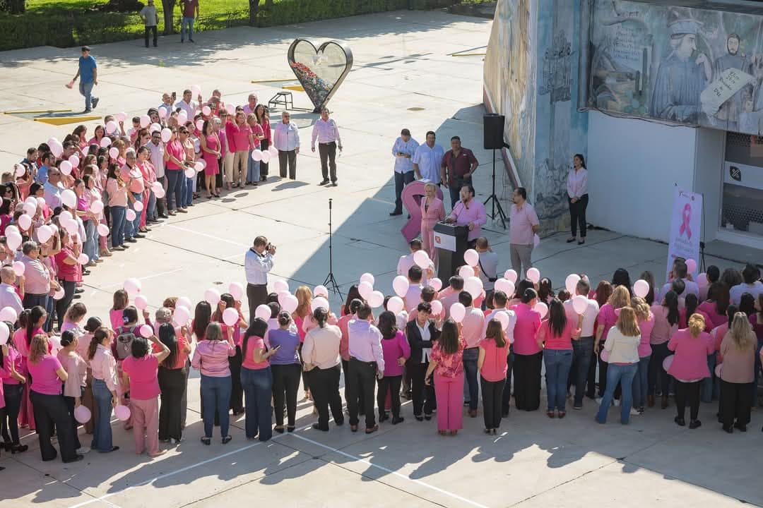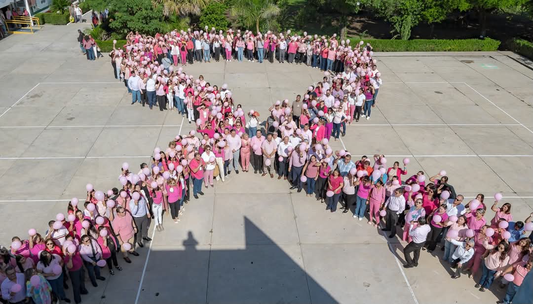 En el marco del Día Mundial de la Lucha Contra el Cáncer de Mama, la Secretaría de Educación de Tamaulipas se unió con esperanza y compromiso a esta causa global, formando un gran listón humano rosa en su explanada central. Con la participación de trabajadoras y trabajadores, se reafirmó la importancia de fomentar la prevención y la detección temprana.