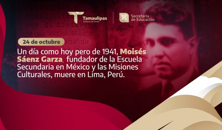Fallece en 1941 Moisés Sáenz Garza, indigenista y educador, fundador de la Escuela Secundaria en México, impulsó las escuelas rurales y promovió las misiones culturales que repercutieron en todo el país, sus restos descansan en la Rotonda de los Hombres Ilustres, de la Ciudad de México.