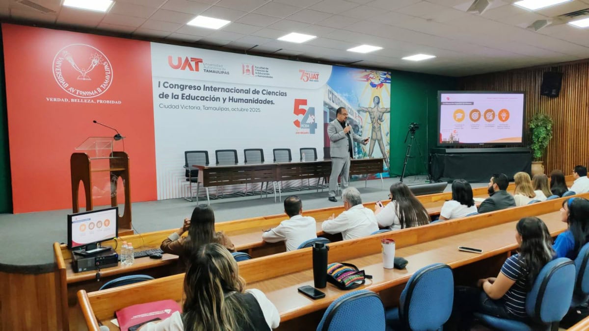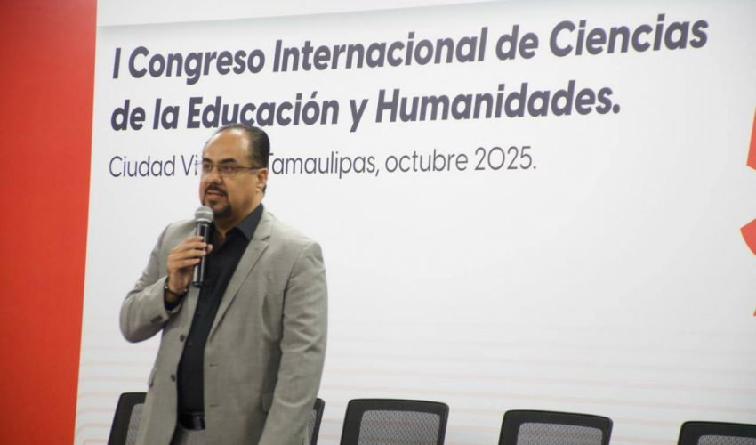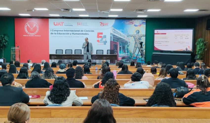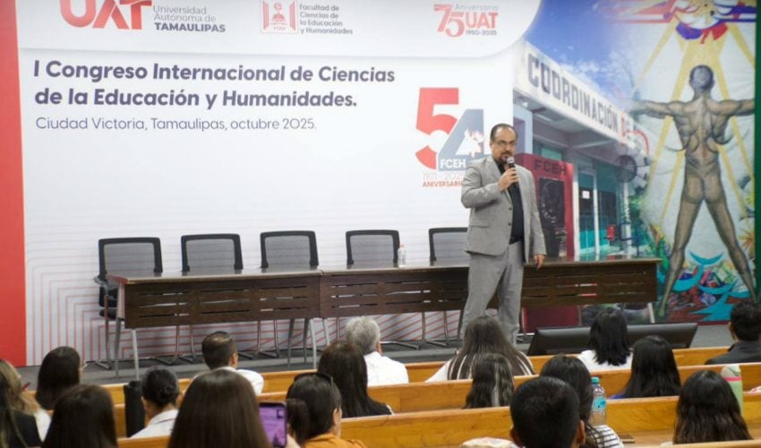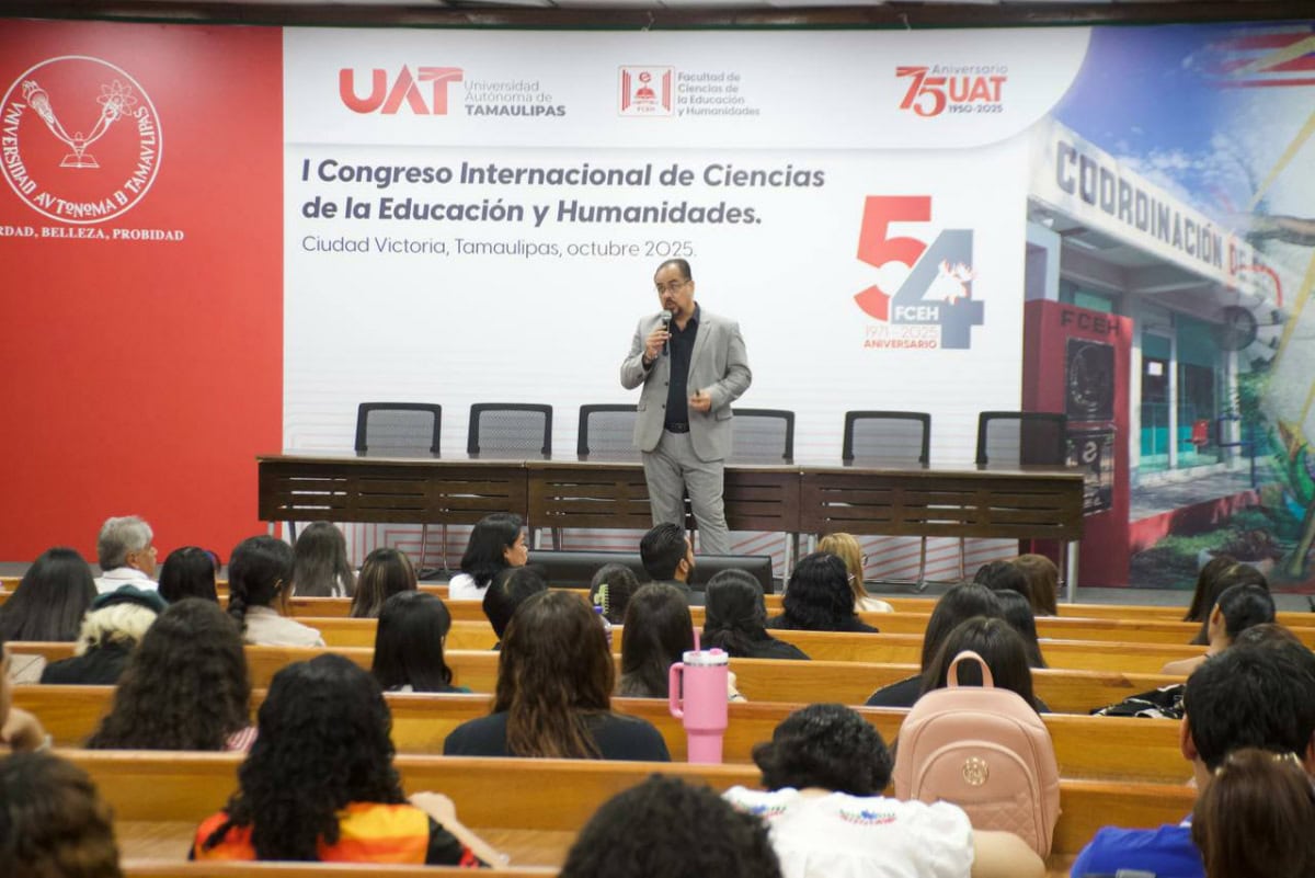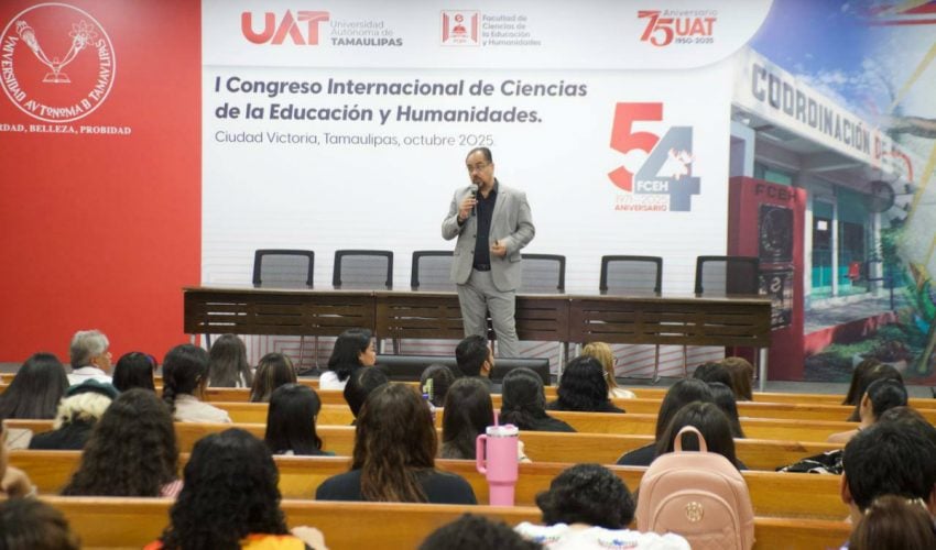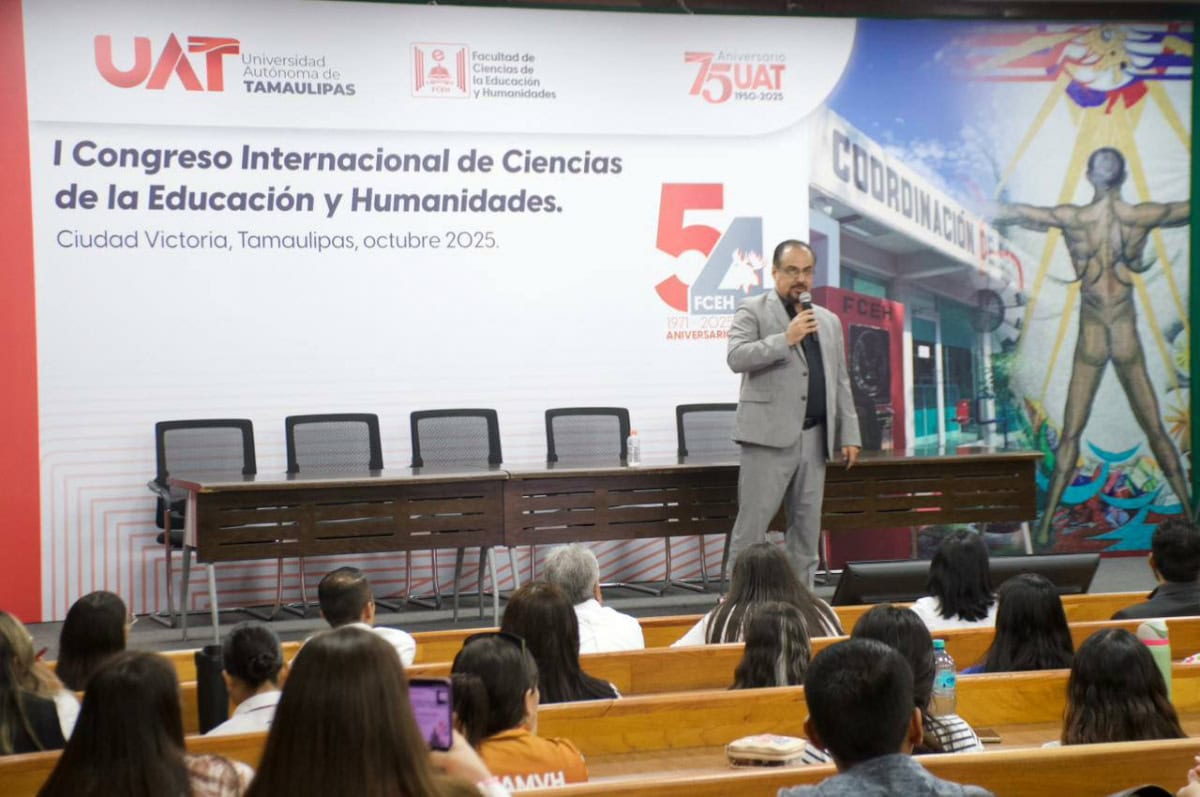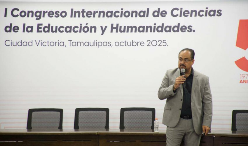 El subsecretario de Educación Media Superior y Superior de Tamaulipas, Igor Crespo Solís, participó como exponente en el Primer Congreso Internacional de Ciencias de la Educación y Humanidades, celebrado dentro del marco del 54° aniversario de la Facultad de Ciencias de la Educación y Humanidades UAT.