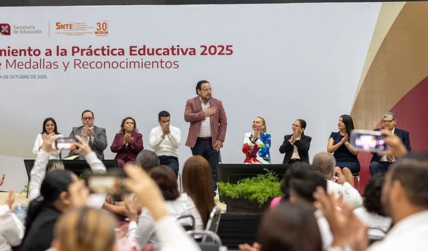 Destacó que las y los homenajeados, son muestra del talento, la creatividad, la innovación y el compromiso de dar lo mejor de sí por la educación y del cumplimiento de lo que la presidenta Claudia Sheinbaum Pardo ha recalcado, que la educación pública no es una mercancía, es un derecho y que todas las niñas, niños y jóvenes en México tienen el derecho a ir a la escuela, a permanecer en ella y a recibir una educación de calidad.